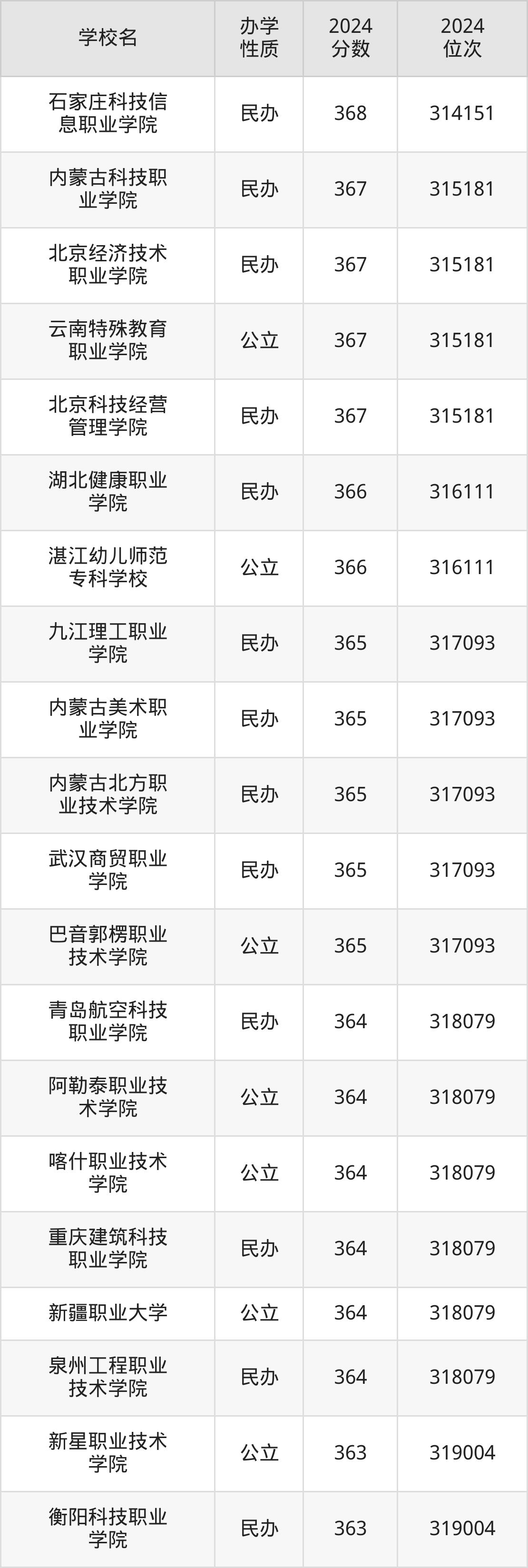 | 内蒙古丰州职 业学院 | 369 | 313096 |