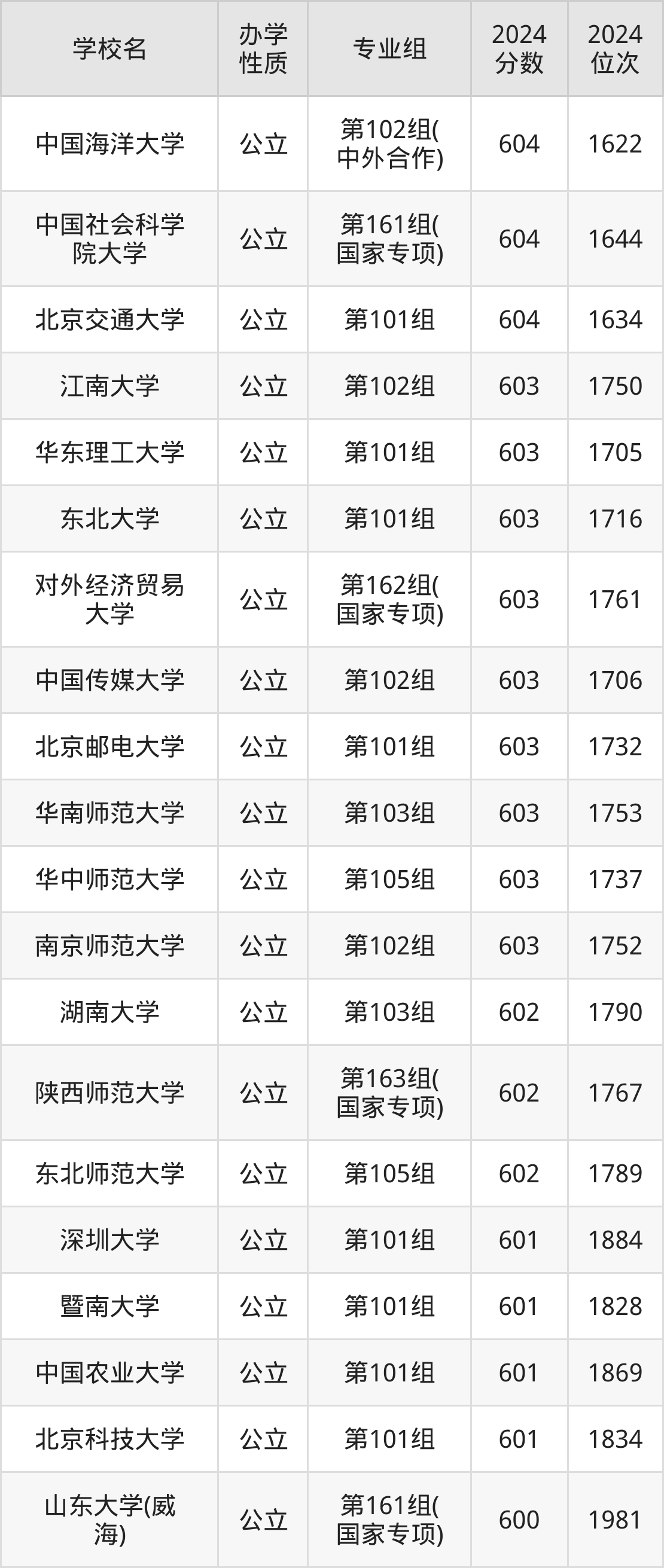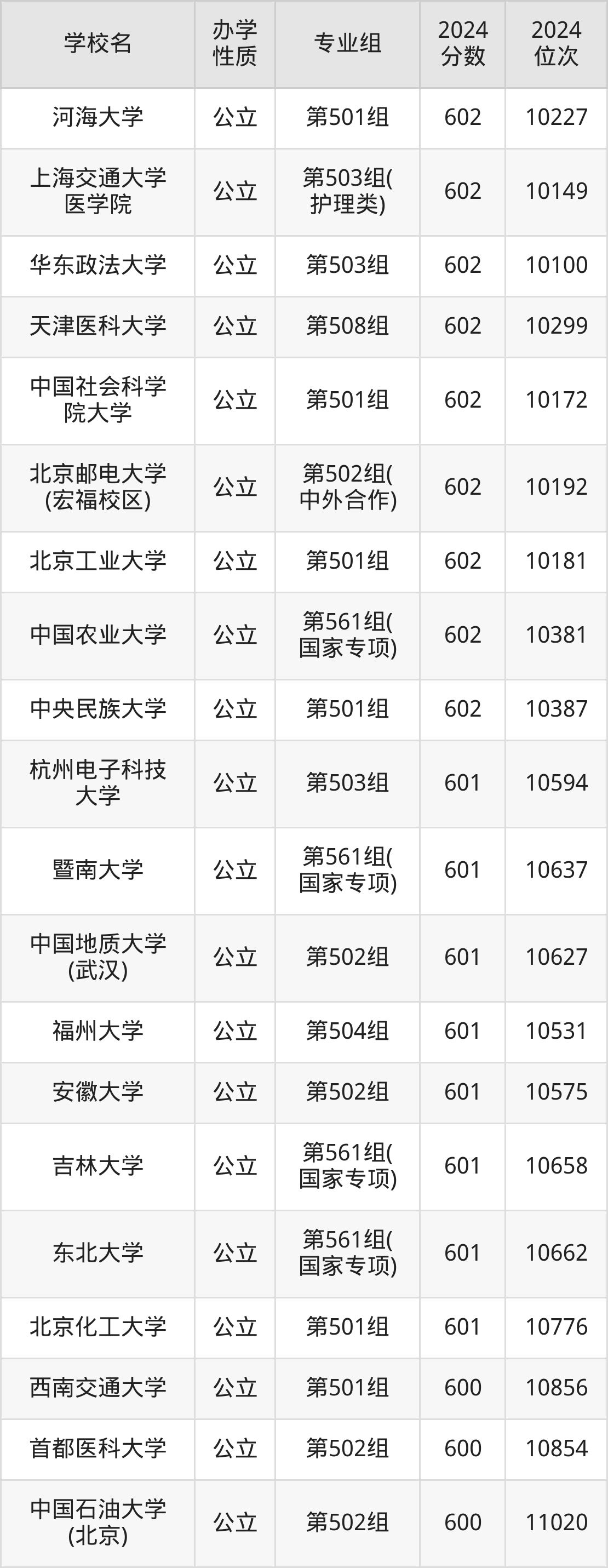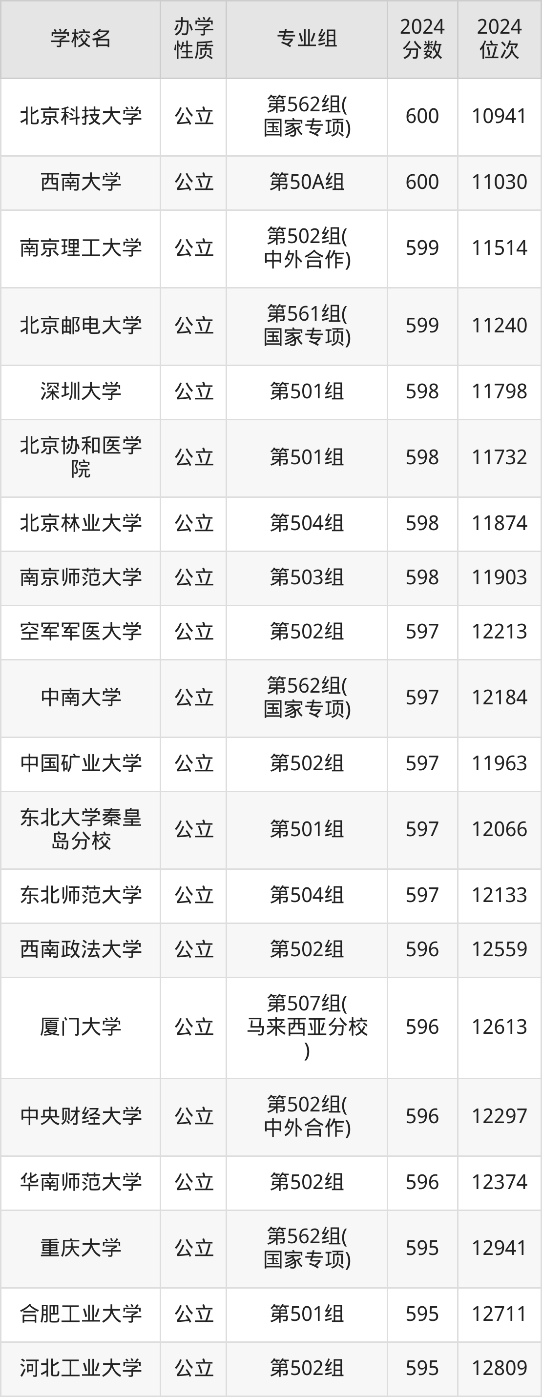 | 学校名 | 专业组 | 2024 分数 | 2024 位次 |