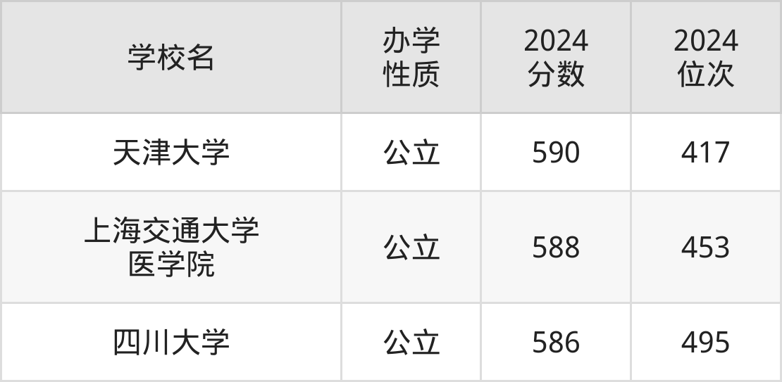 2024年内蒙古文科588分考生能上四川大学、上海交通大学医学院、天津大学3所985院校,具体录取分数线及位次为: