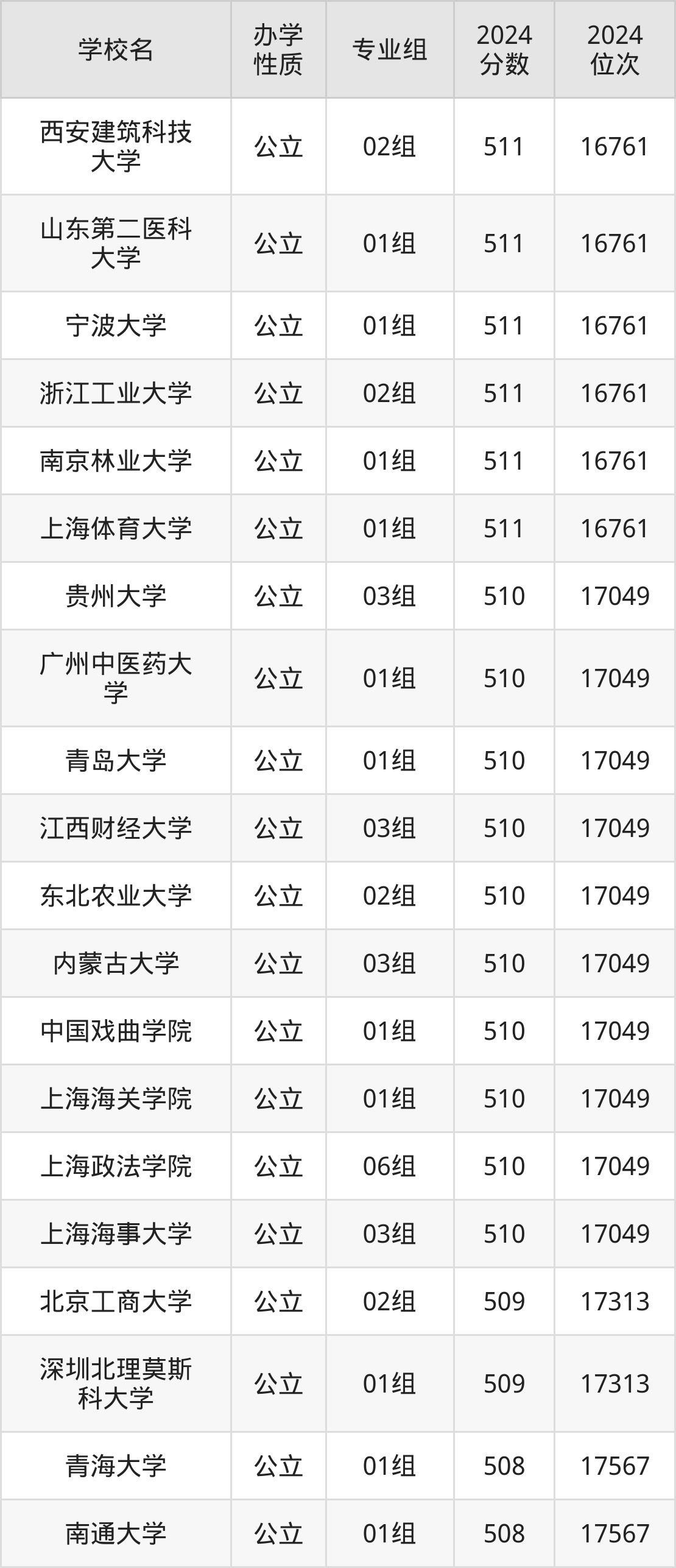 | 学校名 | 专业组 | 2024 分数 | 2024 位次 |