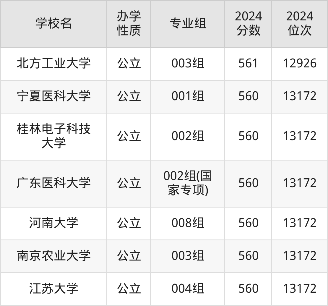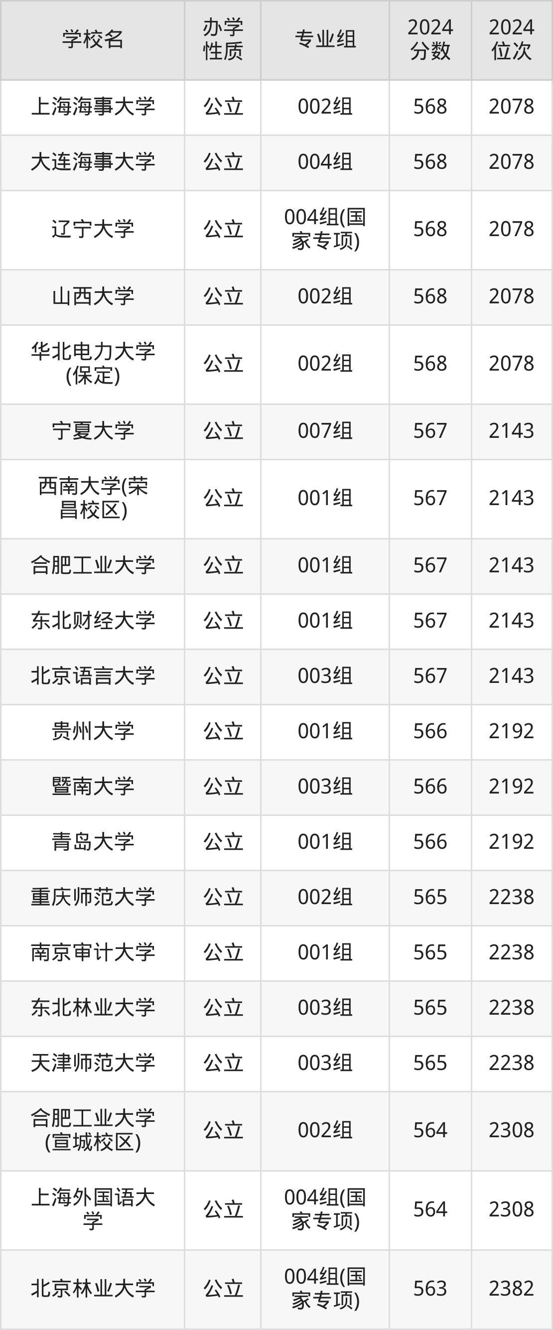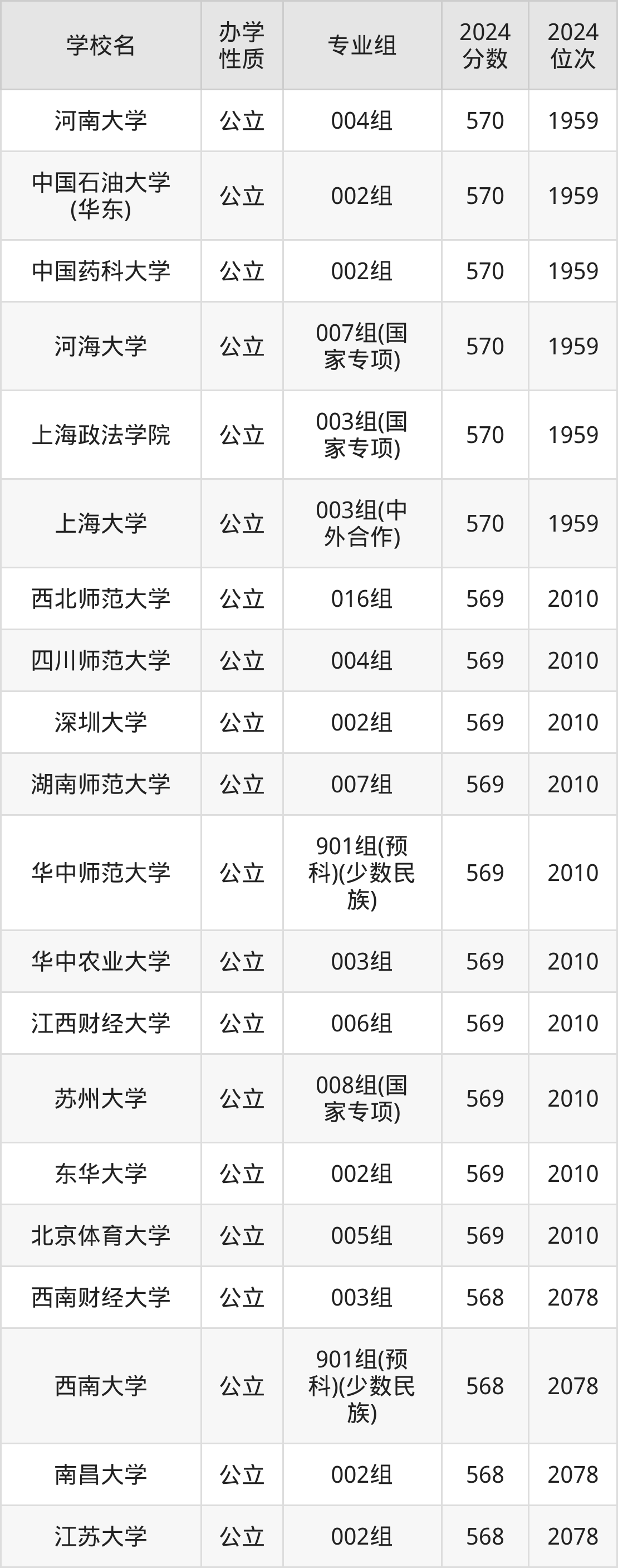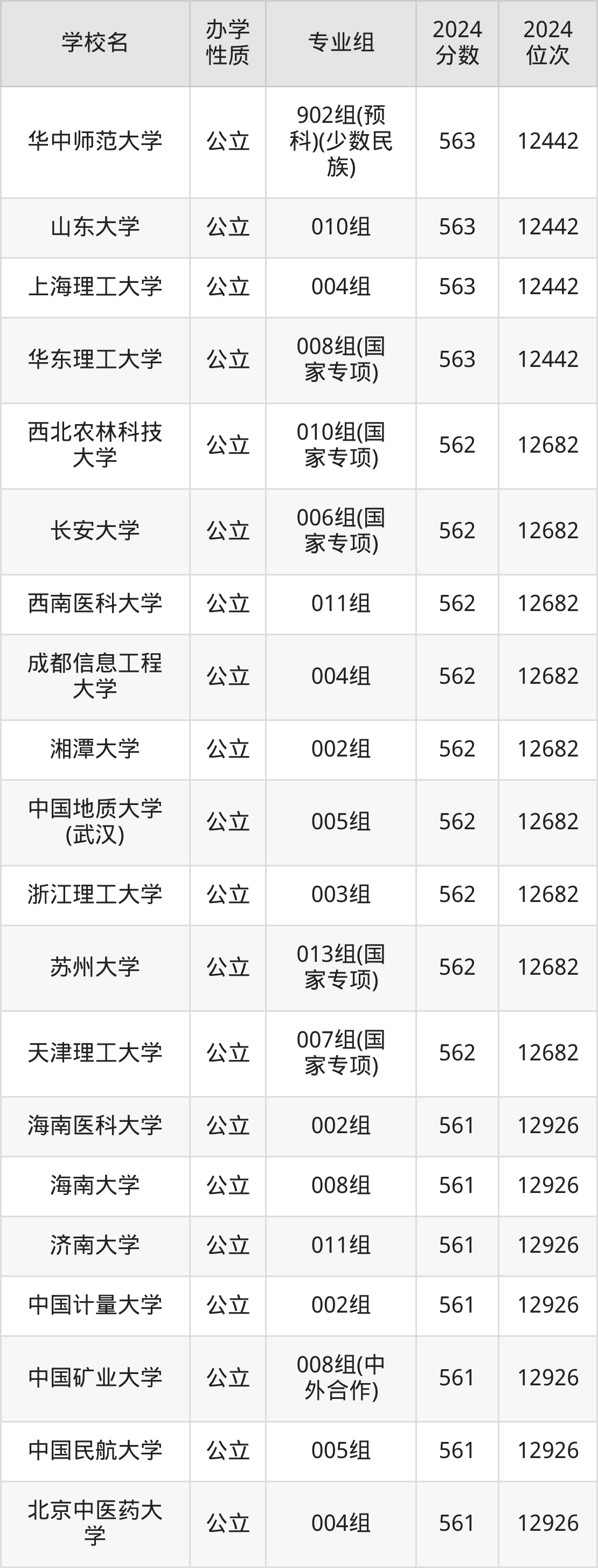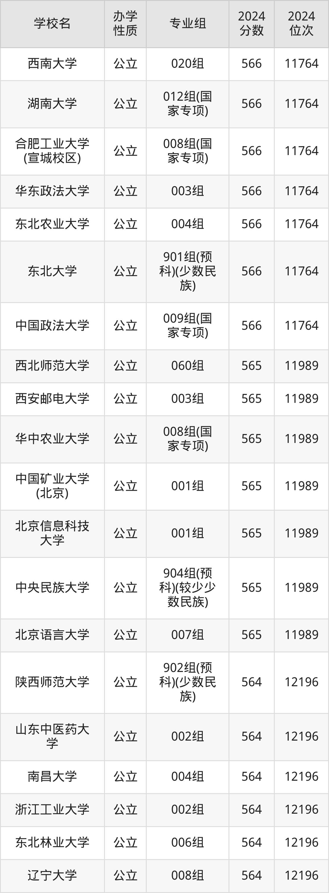 | 西北农林科技 大学 | 902组(预 科)(少数民 族) | 560 | 13172 |