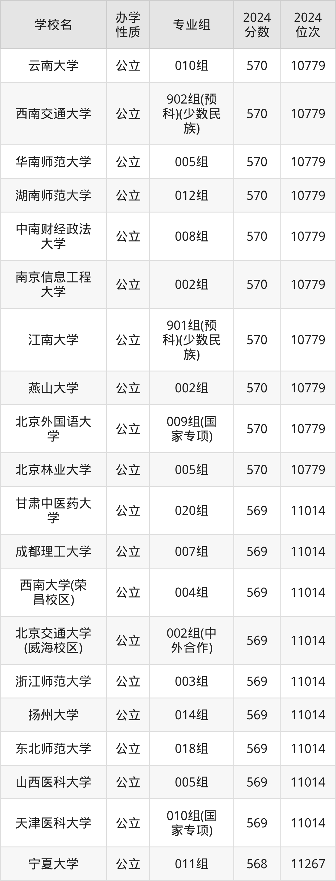 | 西南交通大学 | 902组(预 科)(少数民 族) | 570 | 10779 |