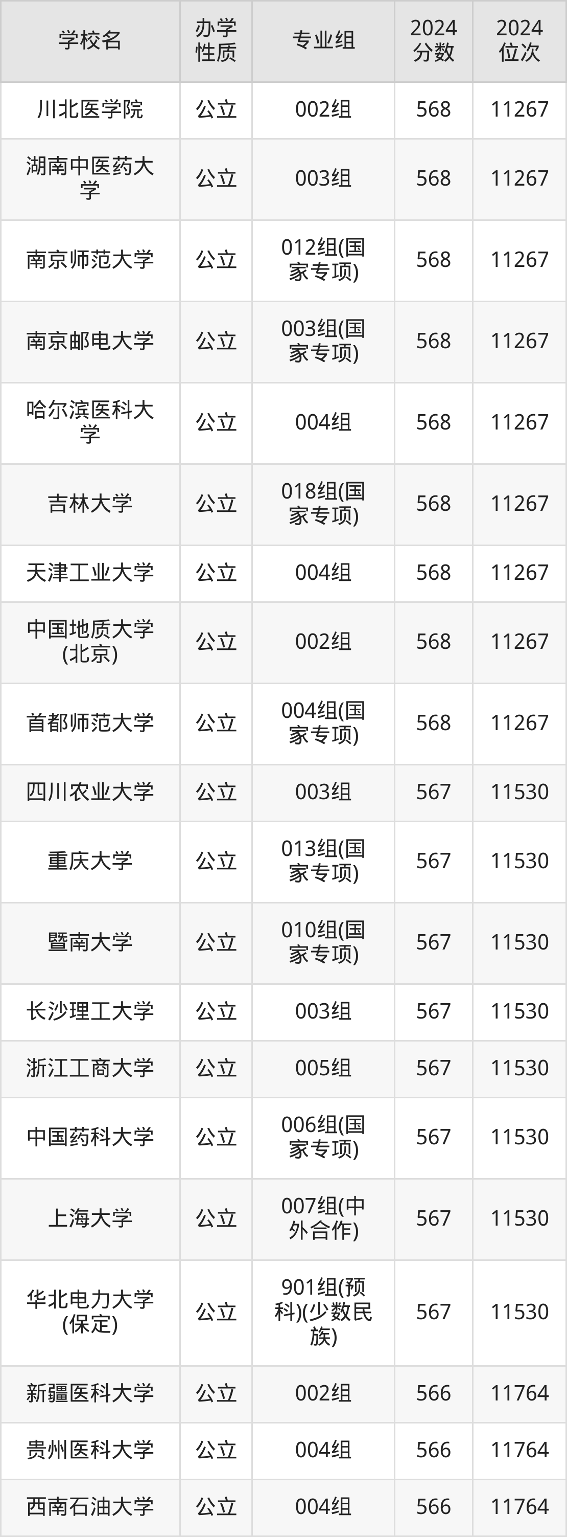 | 华北电力大学 (保定) | 901组(预 科)(少数民 族) | 567 | 11530 |