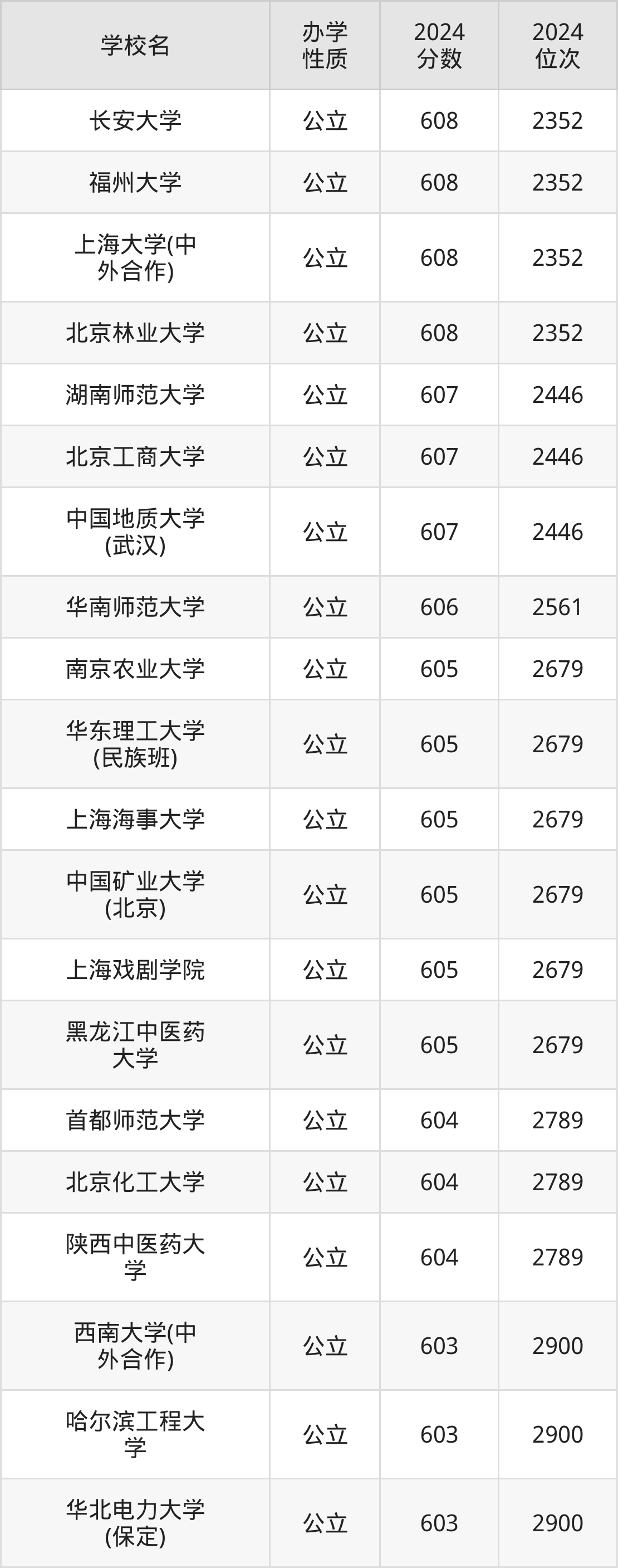 云南603分左右的考生可以上长安大学、福州大学、上海大学(中外合作)等院校,刚好在603分的院校有西南大学(中外合作)、哈尔滨工程大学、华北电力大学(保定)。