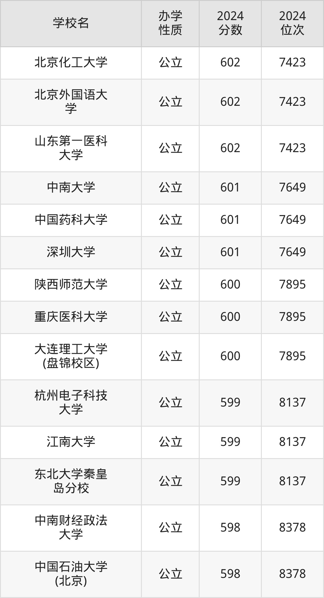 | 大连理工大学 (盘锦校区) | 600 | 7895 |