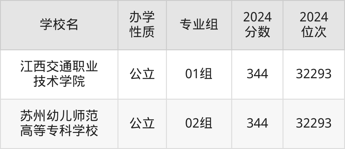 | 江西交通职业 技术学院 | 01组 | 344 | 32293 |