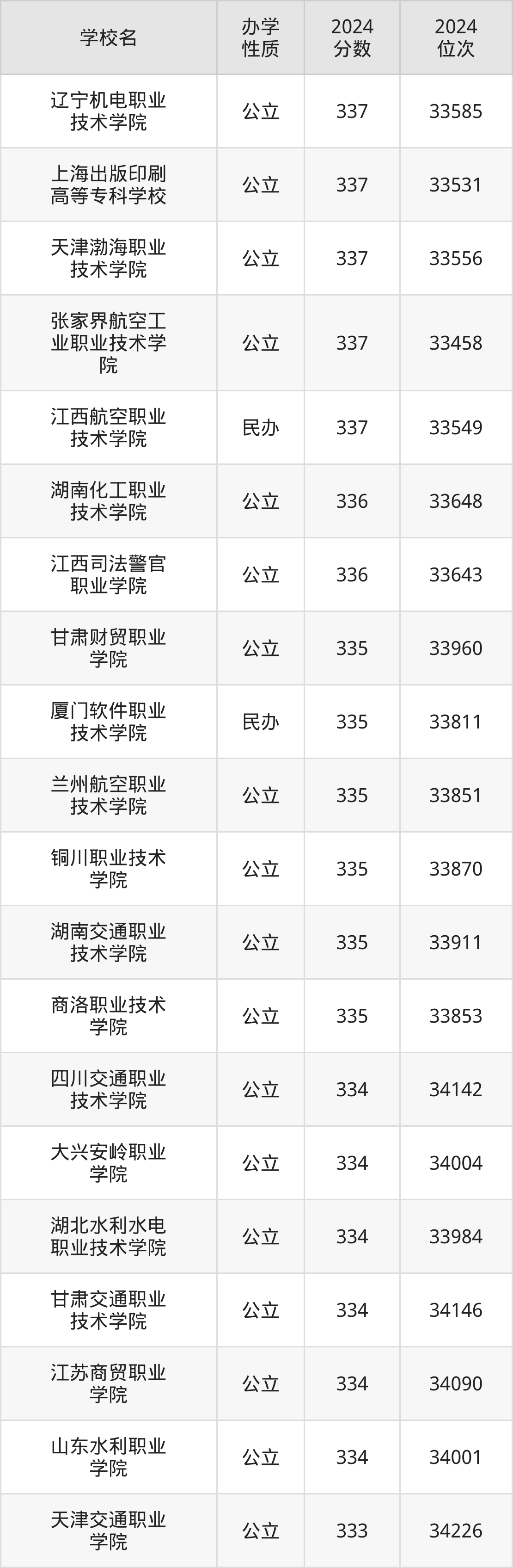 | 吉林司法警官 职业学院 | 332 | 34314 |