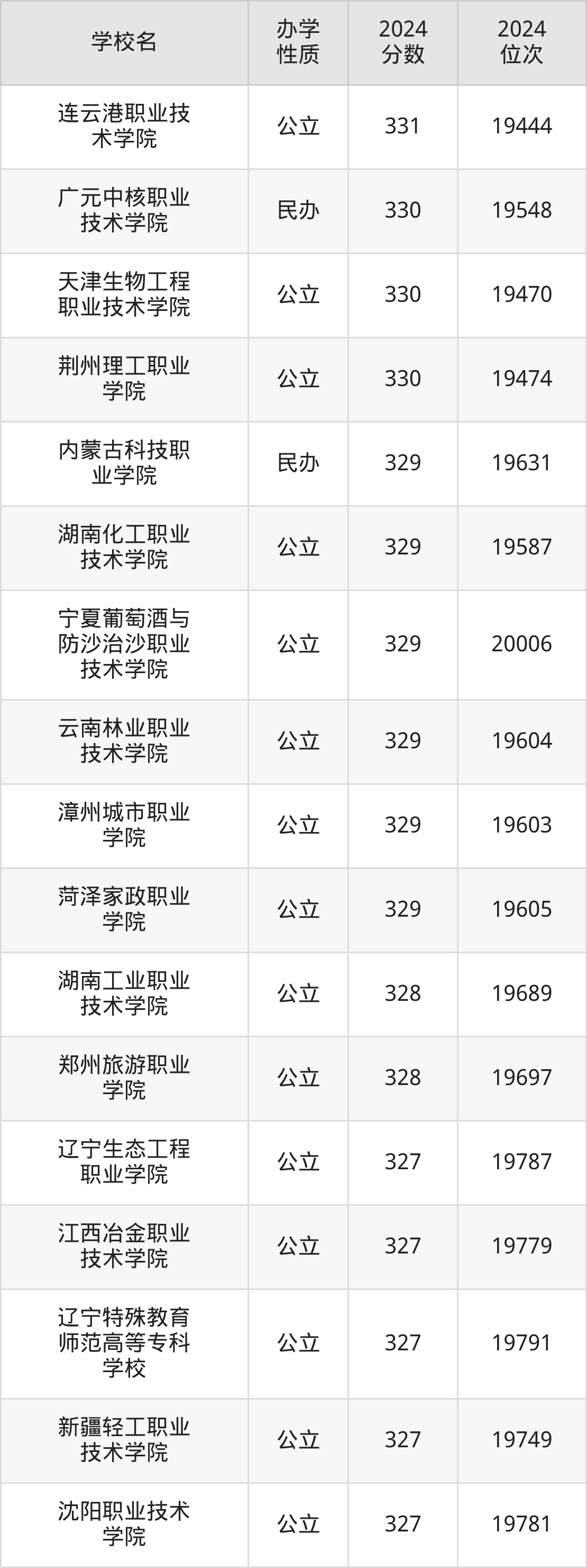 | 沈阳职业技术 学院 | 327 | 19781 |