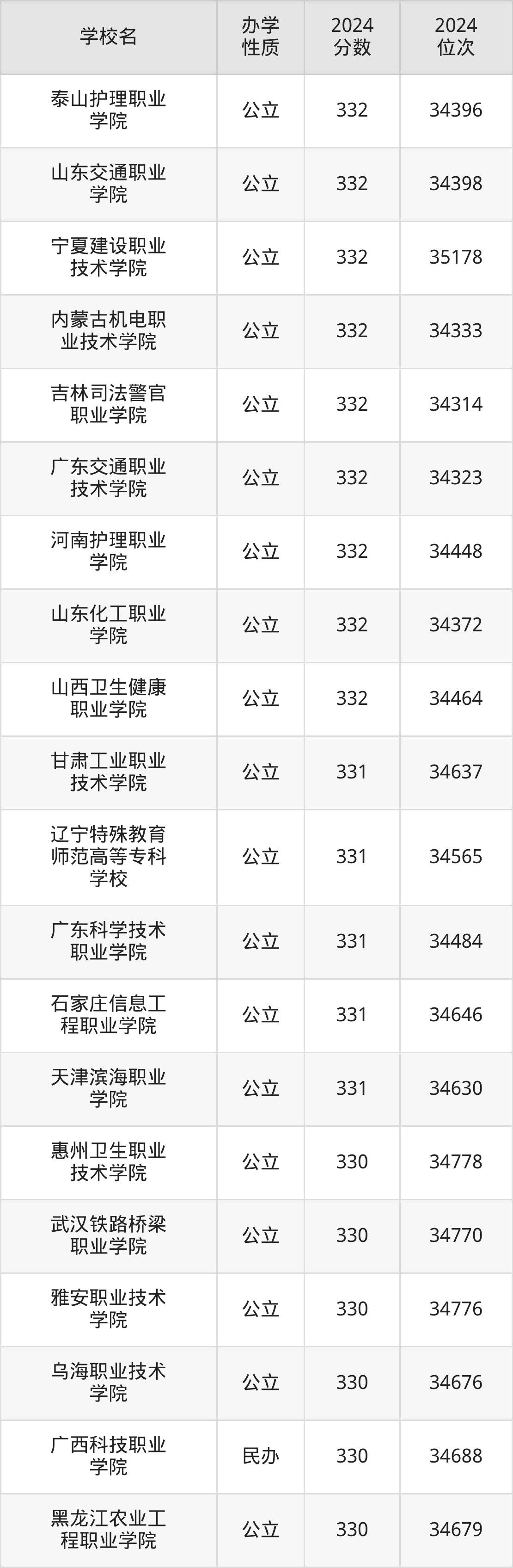 | 山西卫生健康 职业学院 | 332 | 34464 |