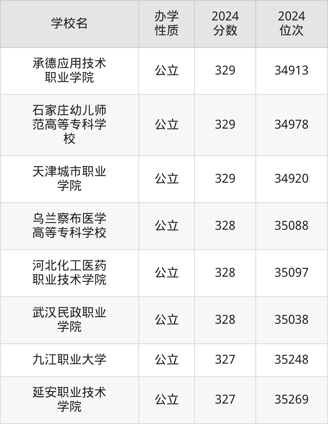 | 承德应用技术 职业学院 | 329 | 34913 |