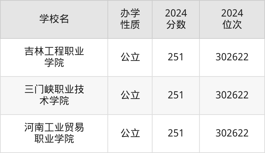 | 河南工业贸易 职业学院 | 251 | 302622 |