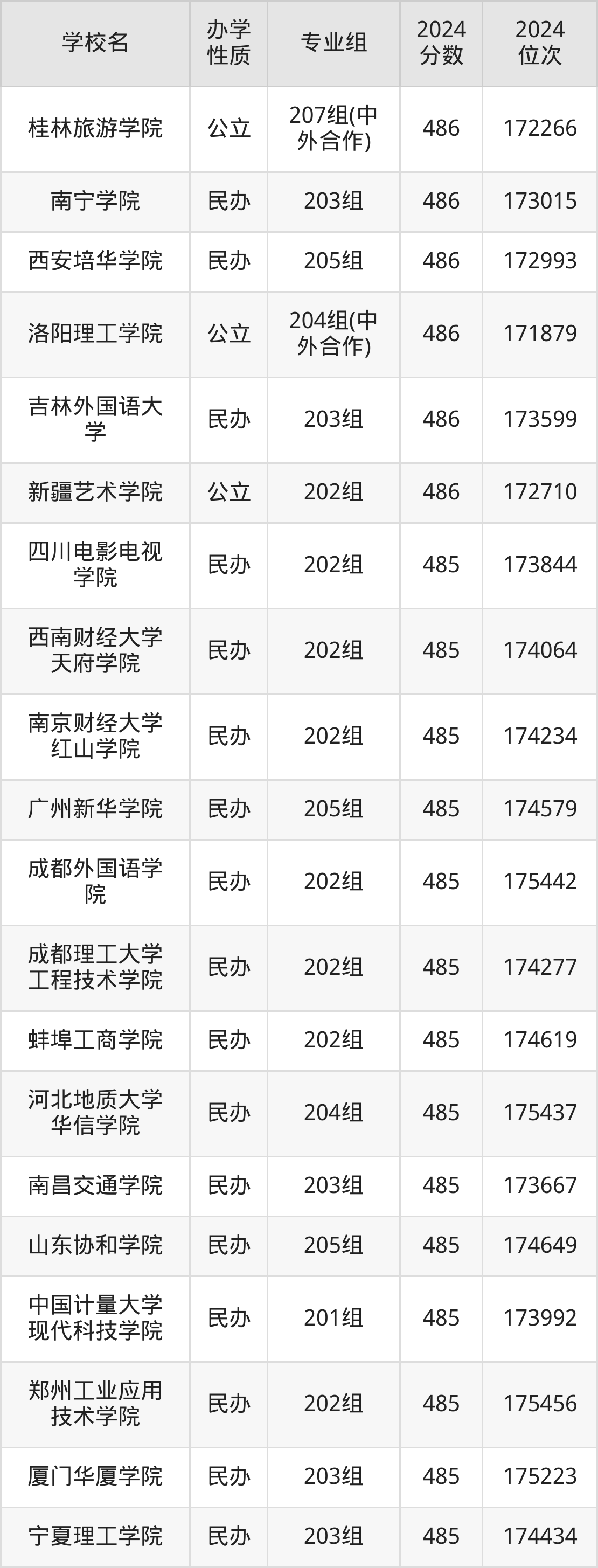 | 重庆外语外事 学院 | 204组 | 485 | 175169 |