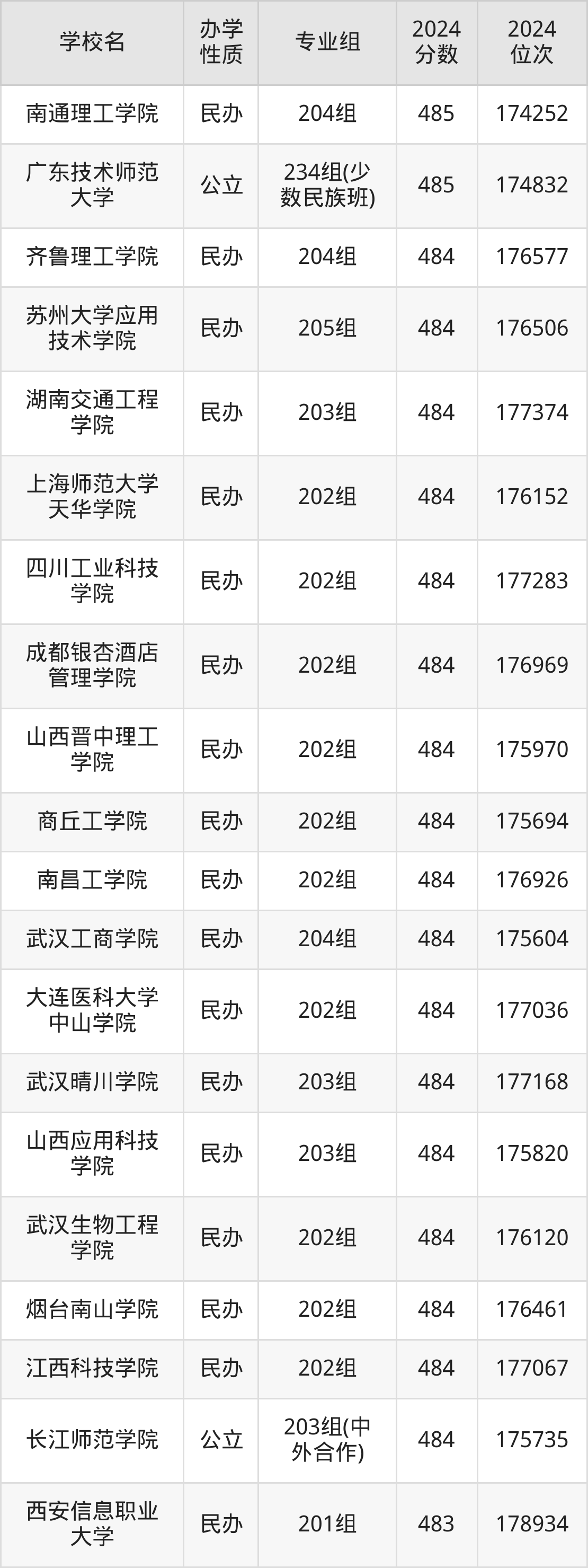 | 江西科技学院 | 202组 | 484 | 177067 |