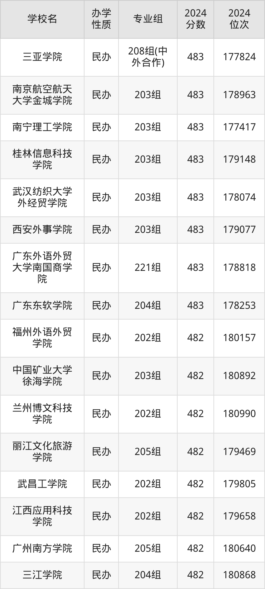 | 三亚学院 | 208组(中 外合作) | 483 | 177824 |