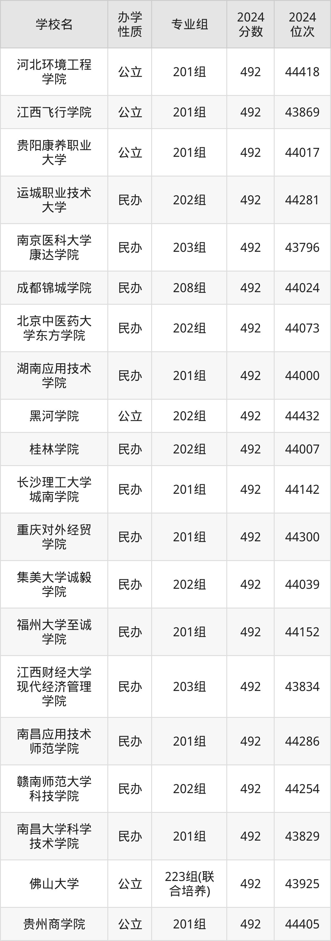 | 贵阳康养职业 大学 | 201组 | 492 | 44017 |