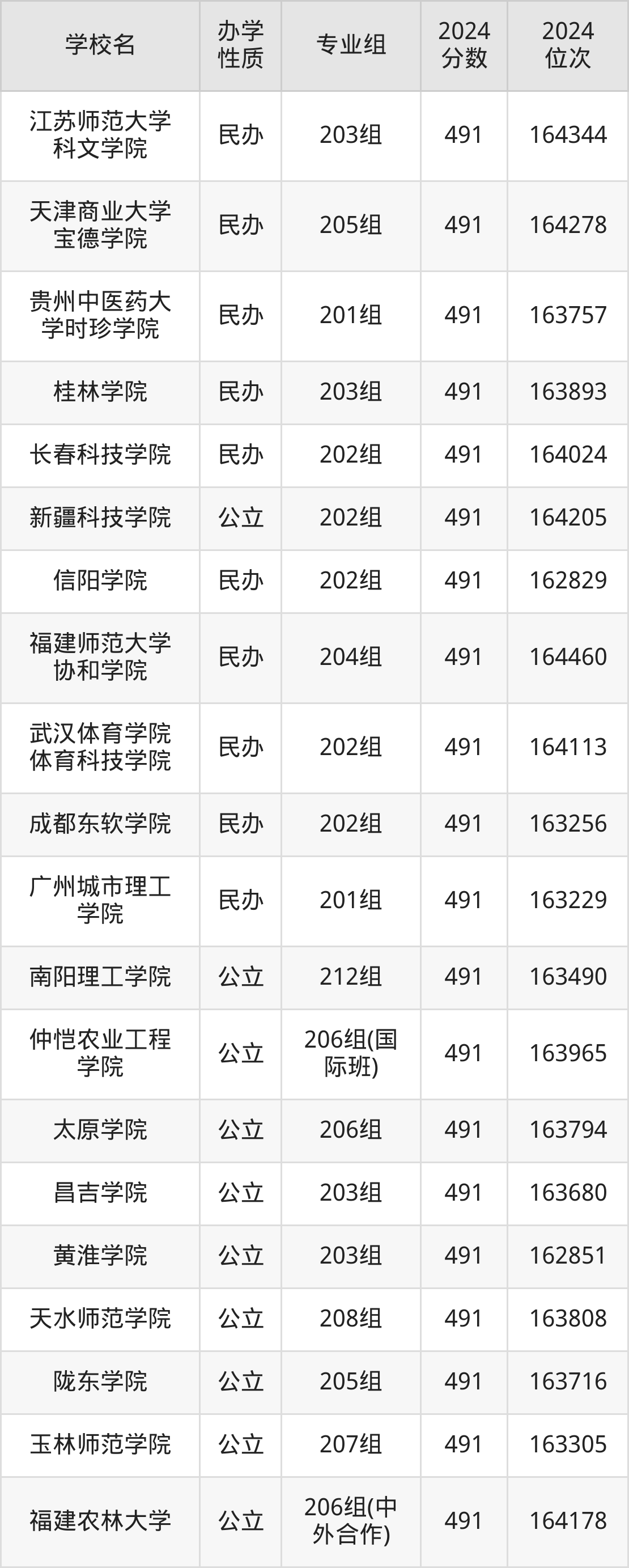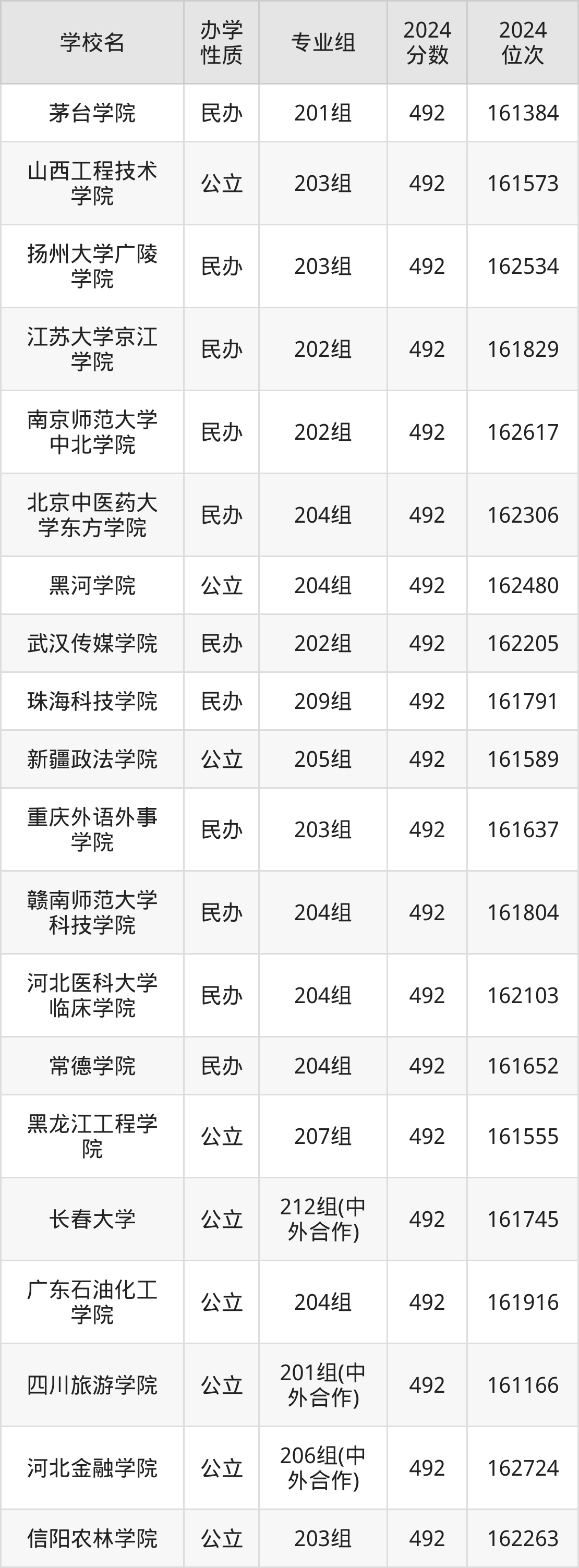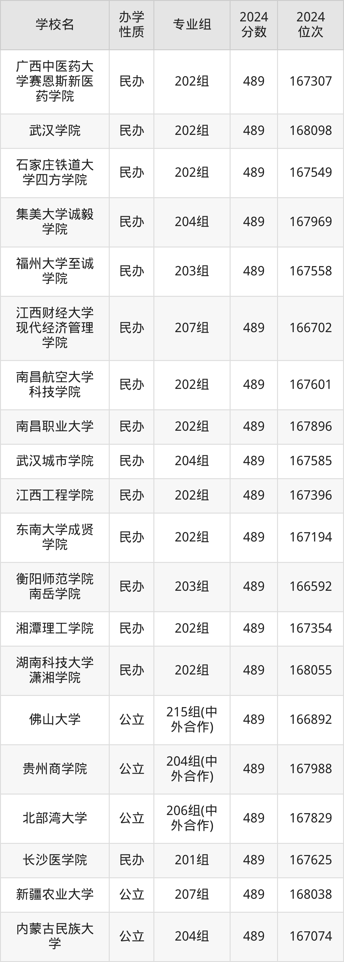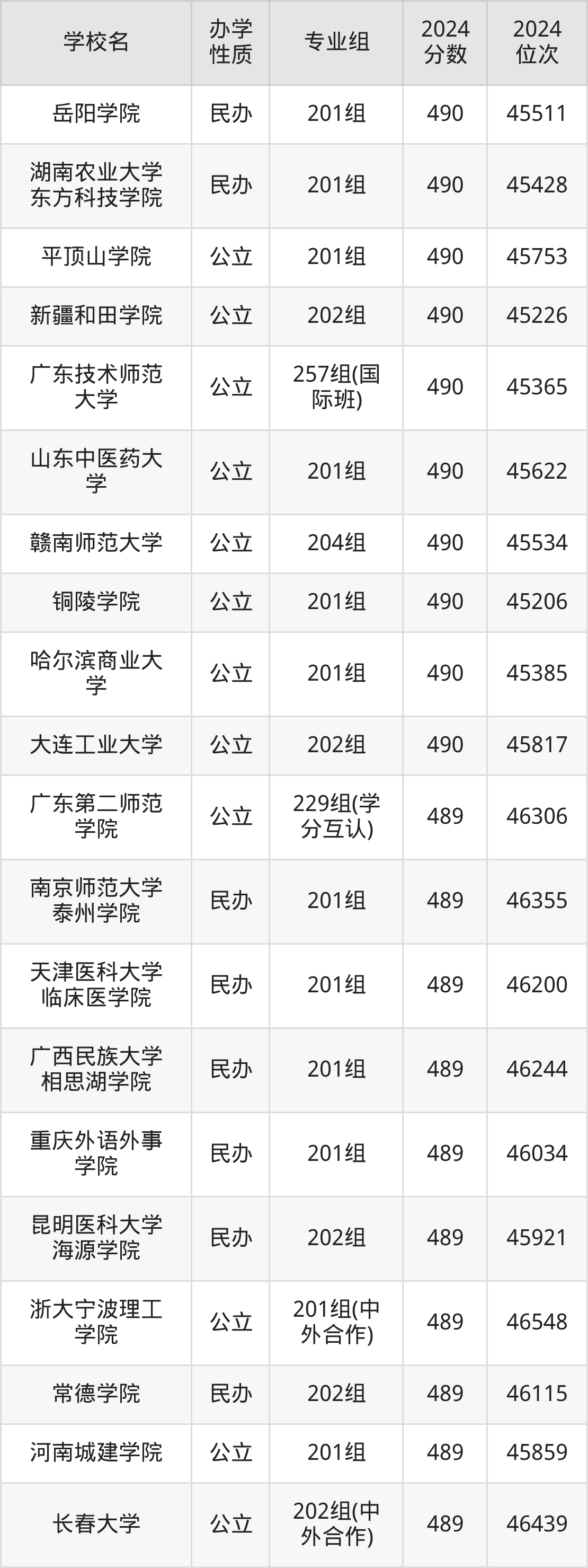 | 长春大学 | 202组(中 外合作) | 489 | 46439 |