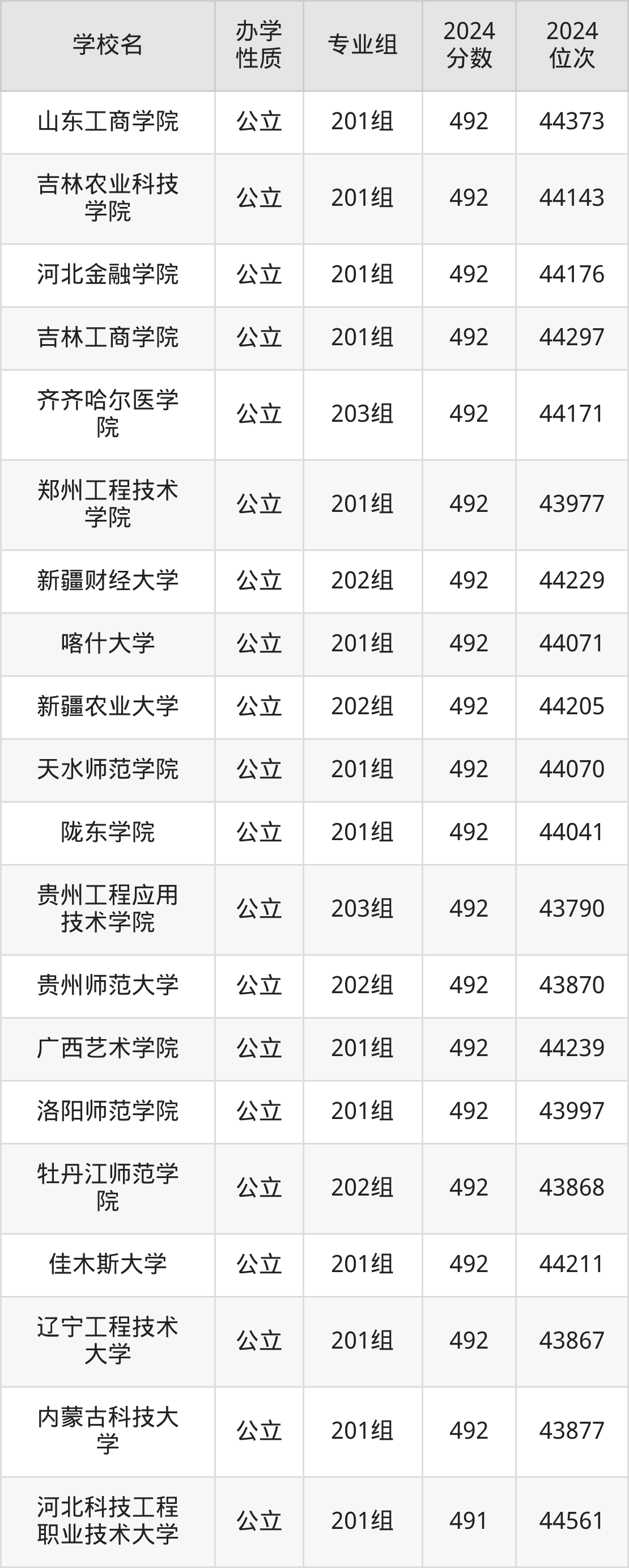 | 吉林农业科技 学院 | 201组 | 492 | 44143 |