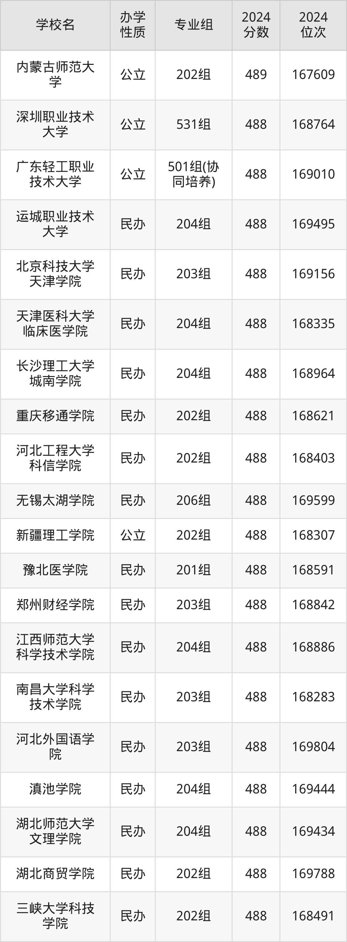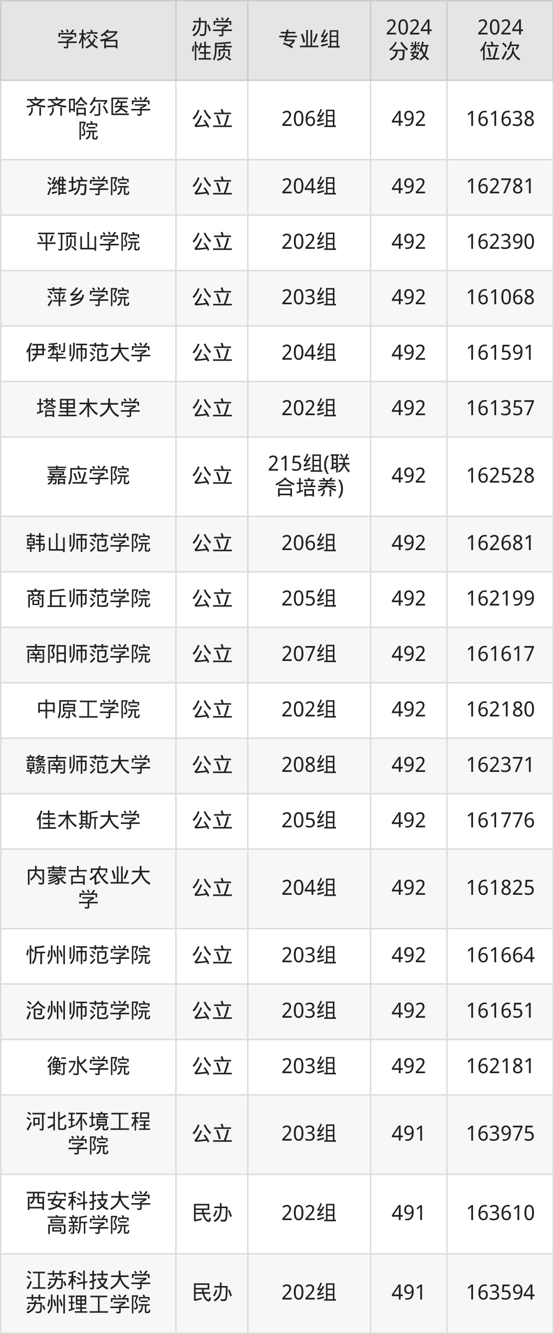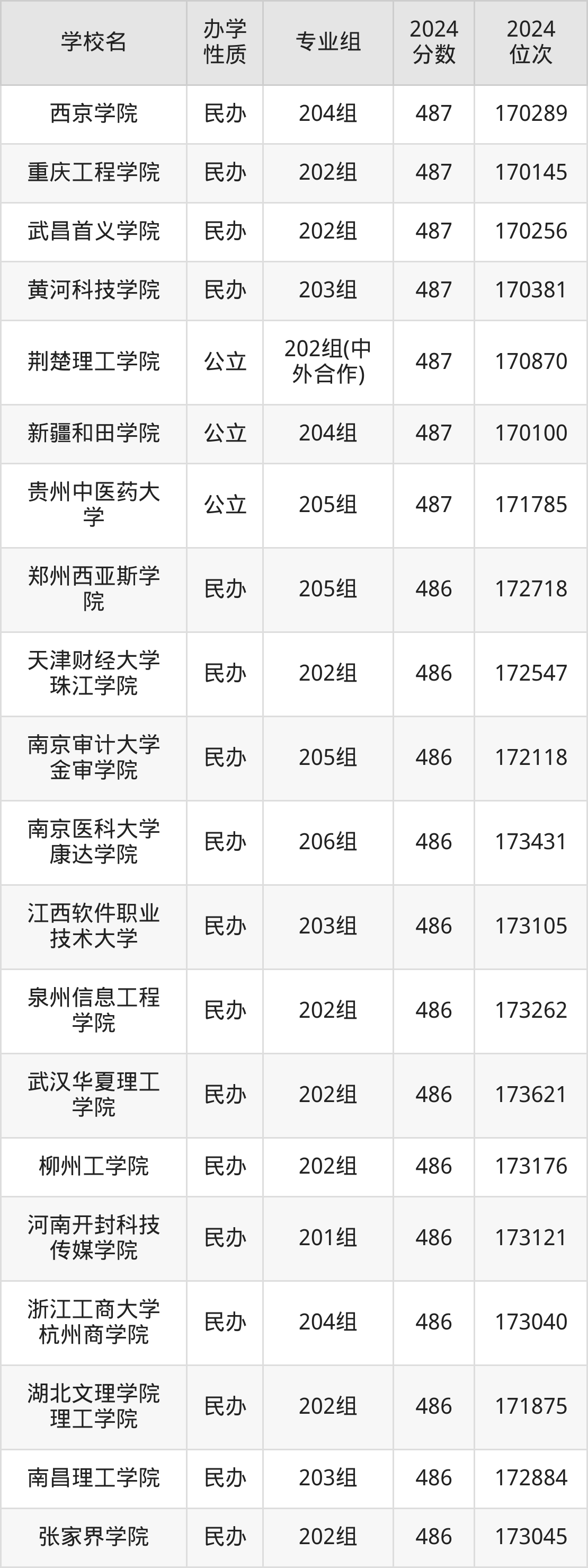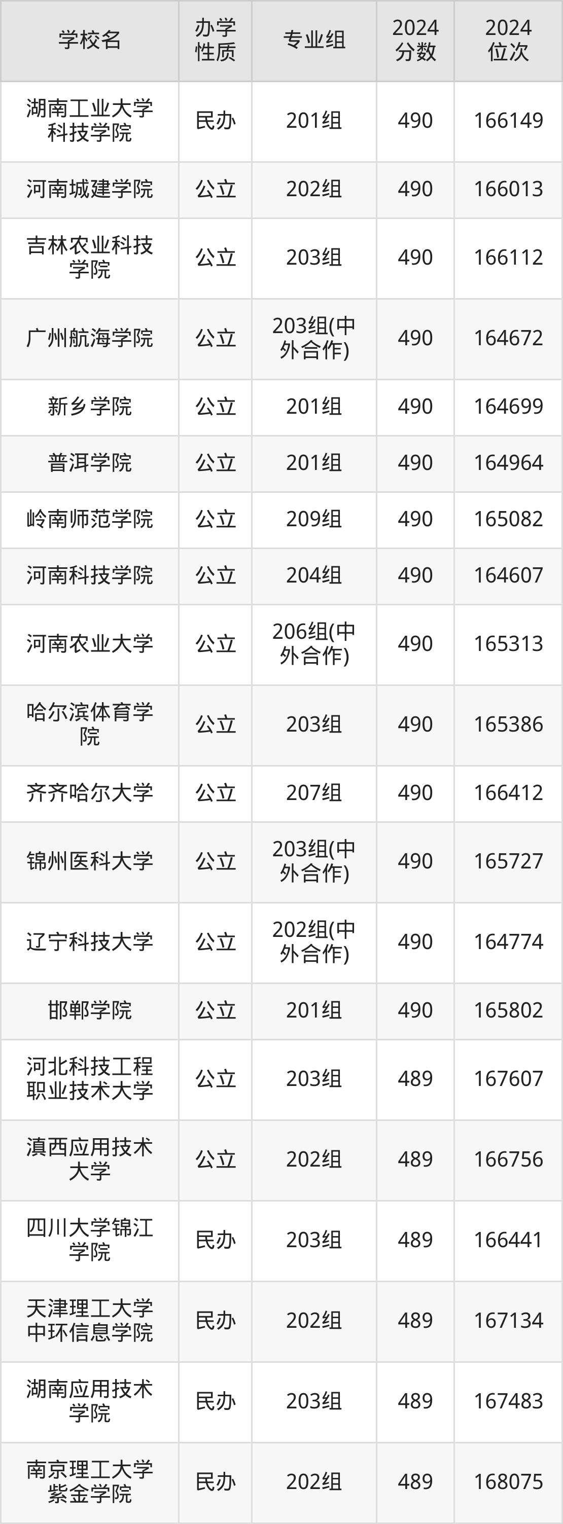 | 学校名 | 专业组 | 2024 分数 | 2024 位次 |