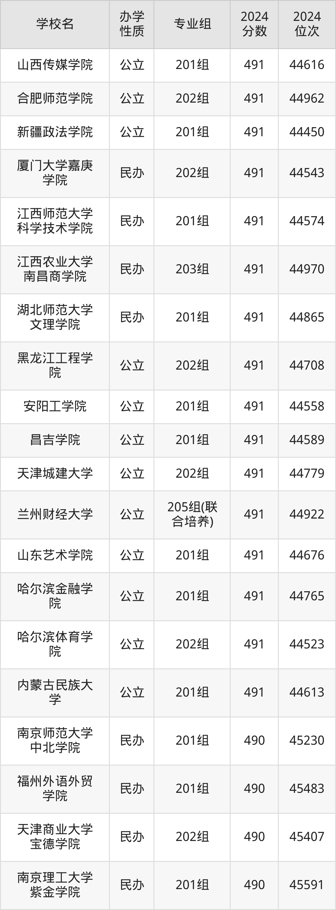 | 江西农业大学 南昌商学院 | 203组 | 491 | 44970 |