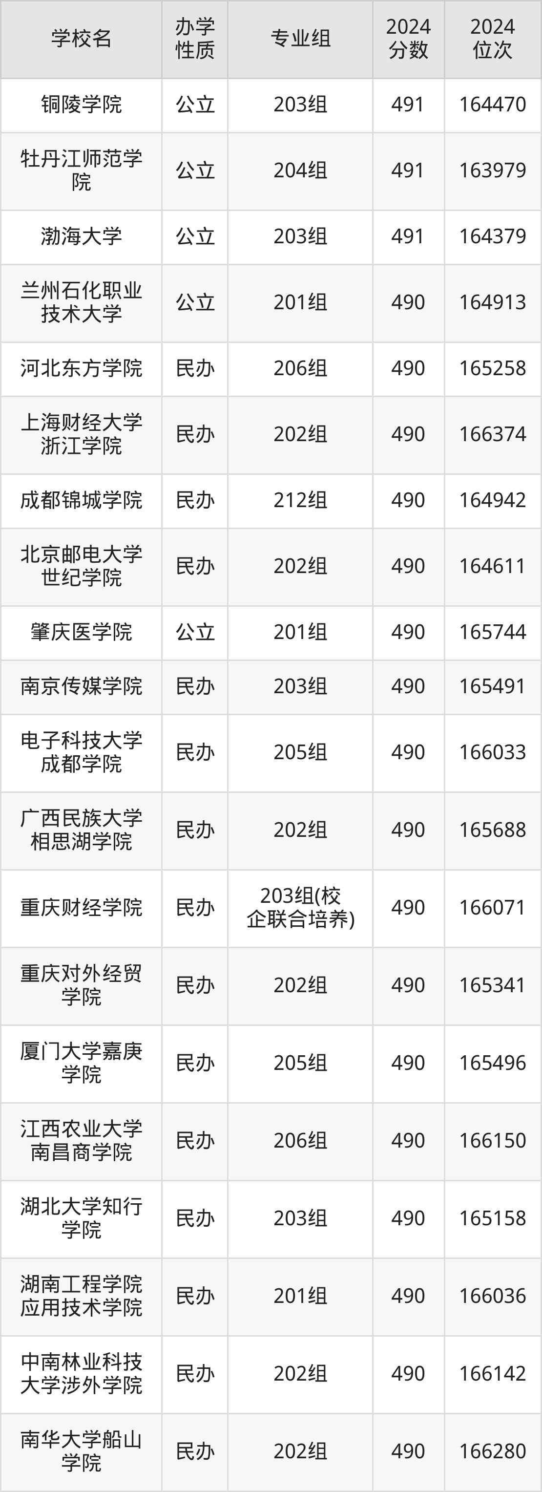 | 铜陵学院 | 201组 | 490 | 45206 |