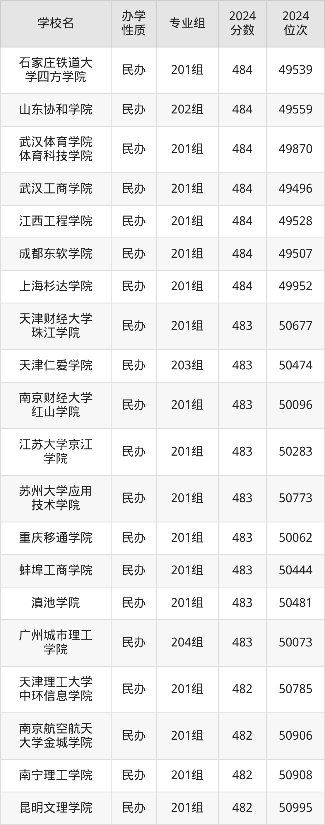 | 河北东方学院 | 204组 | 483 | 179152 |