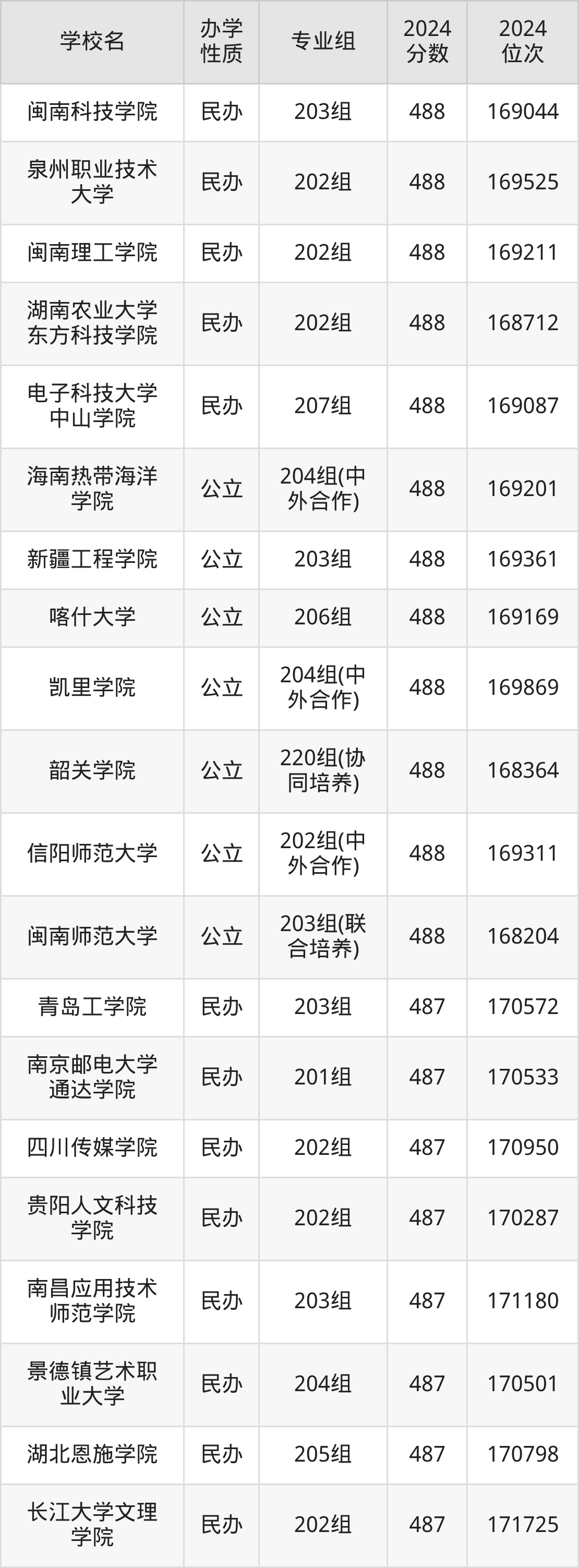 | 闽南科技学院 | 204组 | 484 | 177014 |