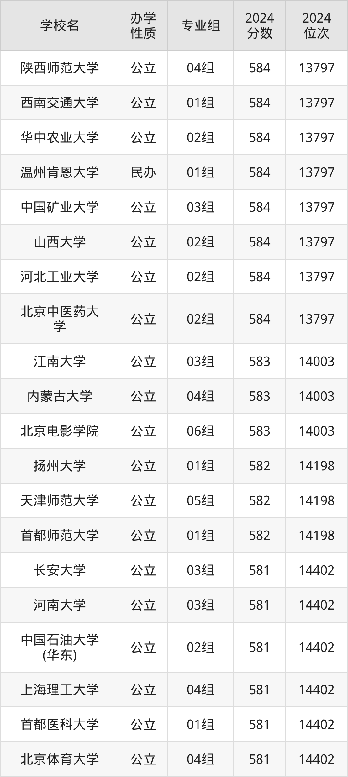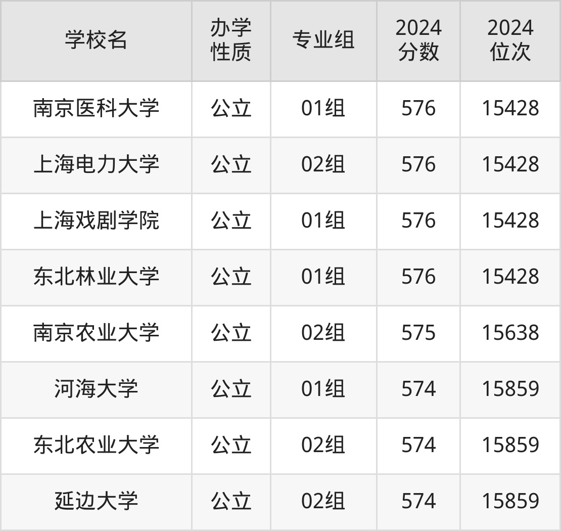 | 学校名 | 专业组 | 2024 分数 | 2024 位次 |