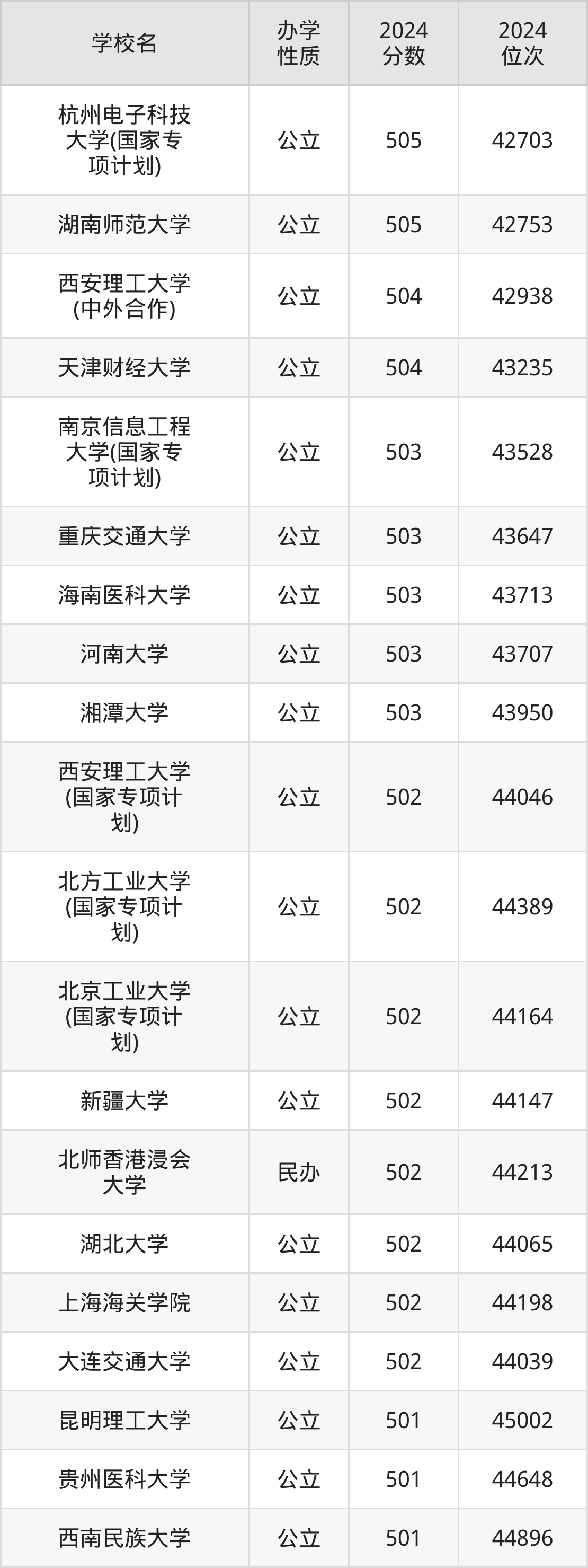| 西安理工大学 (国家专项计 划) | 502 | 44046 |