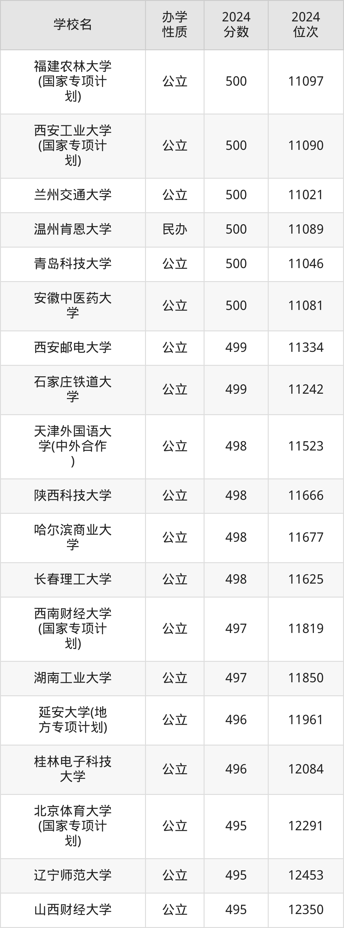 为了方便2025届考生了解自己能上哪些大学,本文也整理出了陕西500分左右能上的所有大学名单,供2025年考生参考。