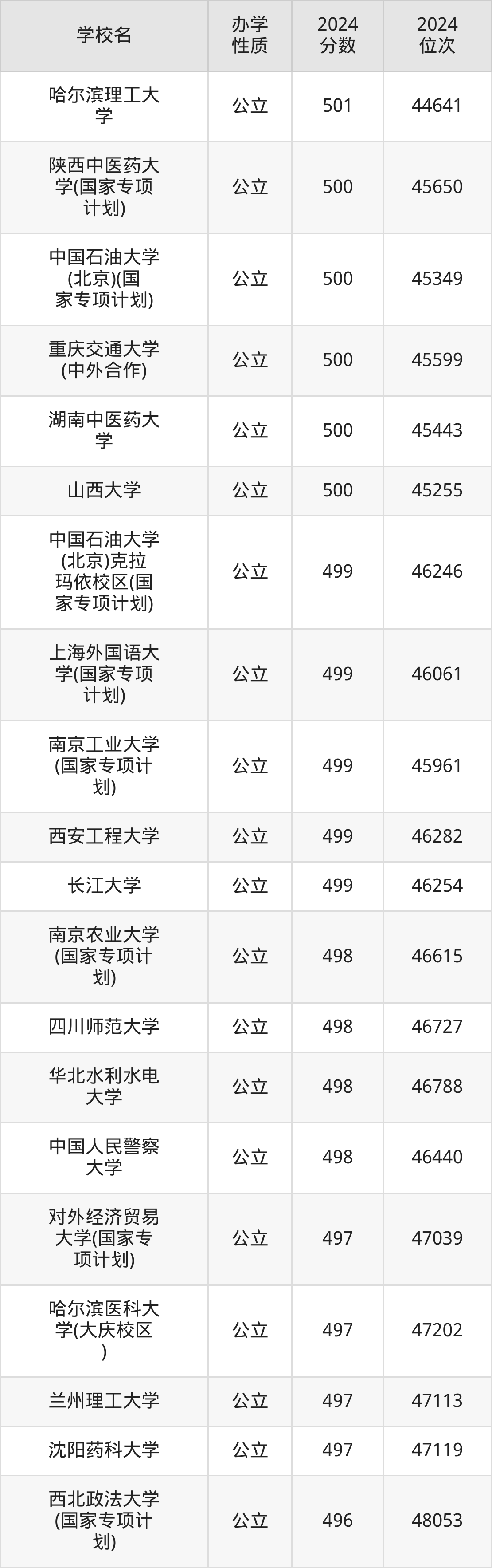 | 中国石油大学 (北京)(国 家专项计划) | 500 | 45349 |