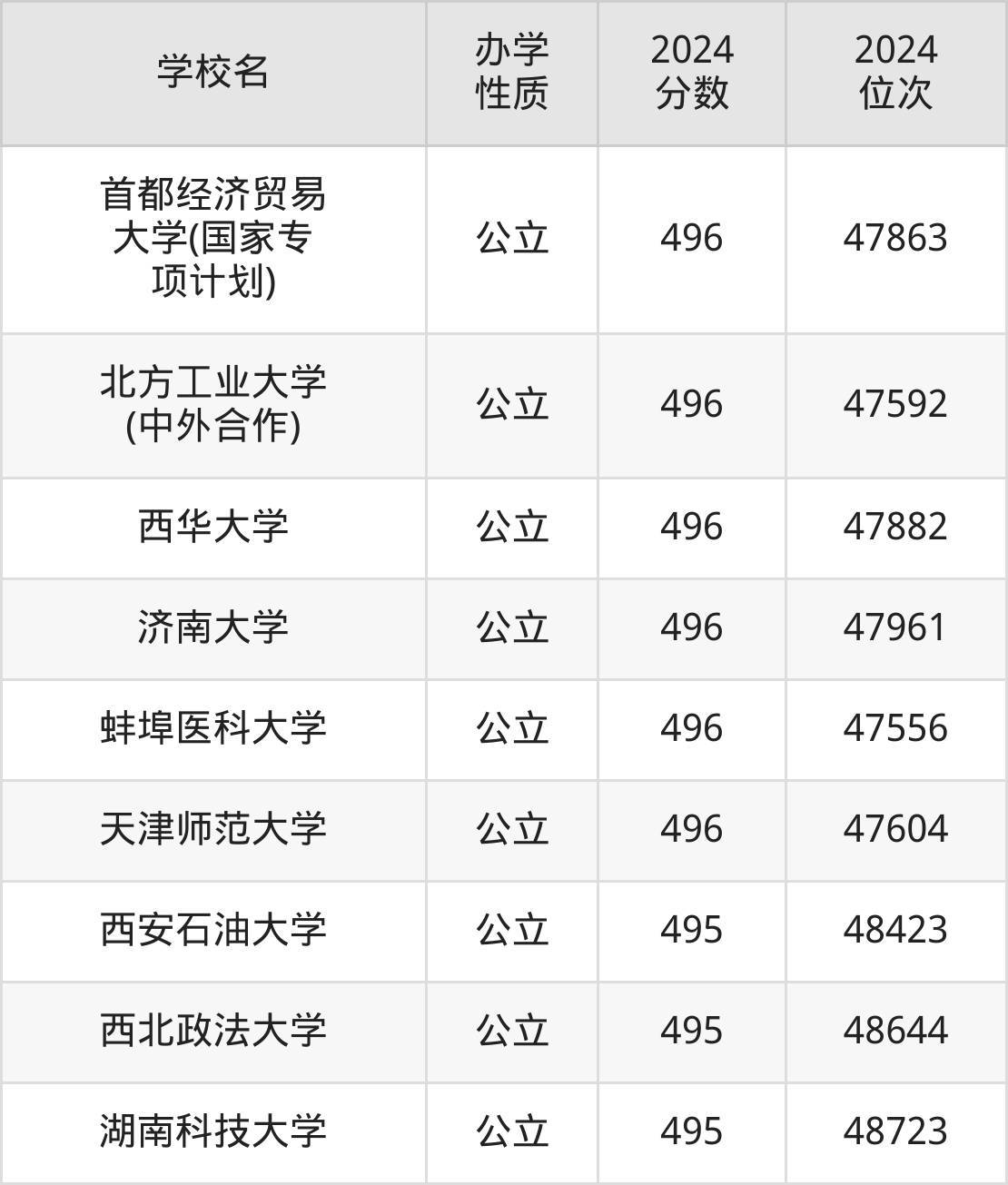 | 西北政法大学 (国家专项计 划) | 496 | 48053 |