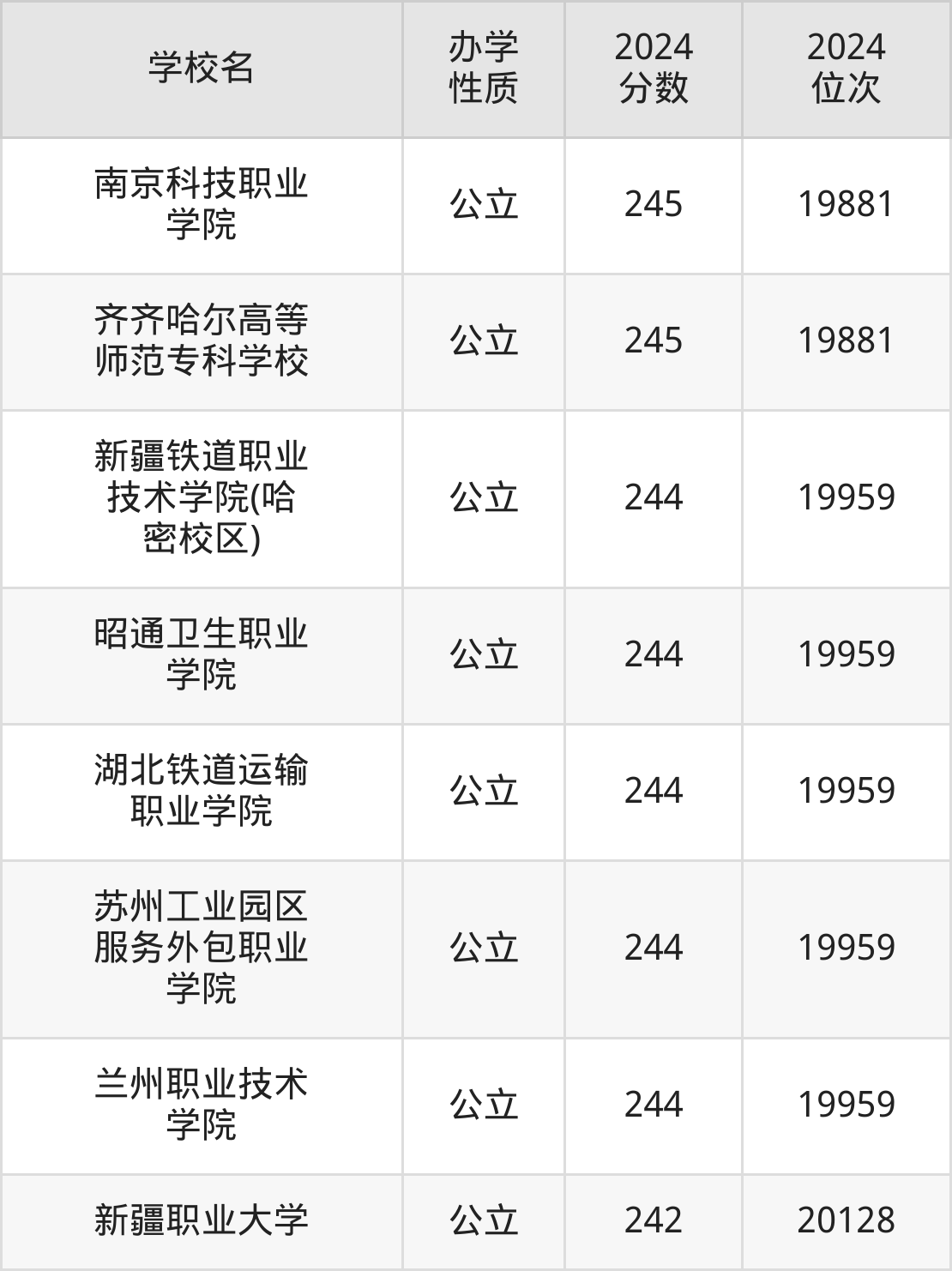 | 湖北铁道运输 职业学院 | 244 | 19959 |