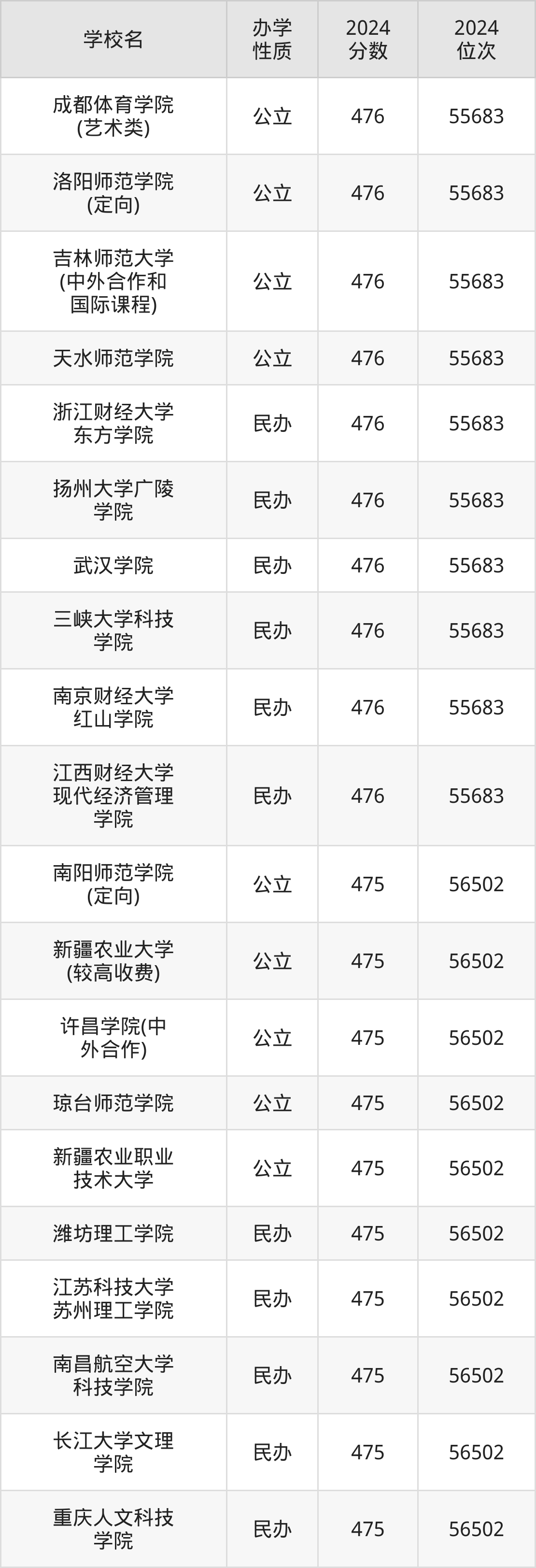 | 成都体育学院 (艺术类) | 476 | 55683 |