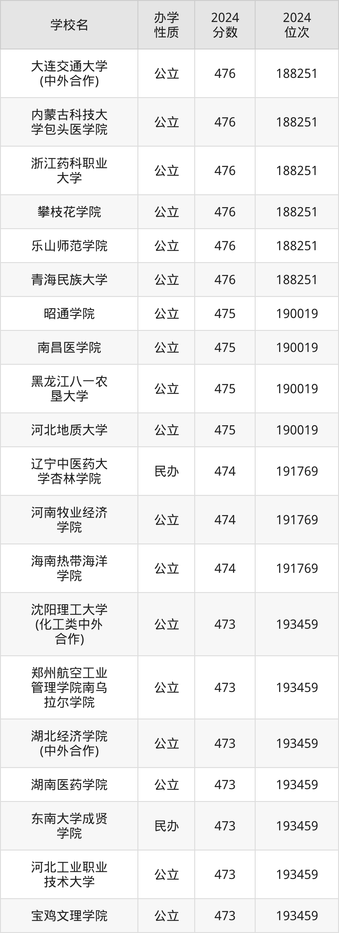 2024年河南理科471分考生能上大连交通大学(中外合作)、内蒙古科技大学包头医学院、浙江药科职业大学、攀枝花学院、乐山师范学院等93所二本院校,具体录取分数线及位次为: