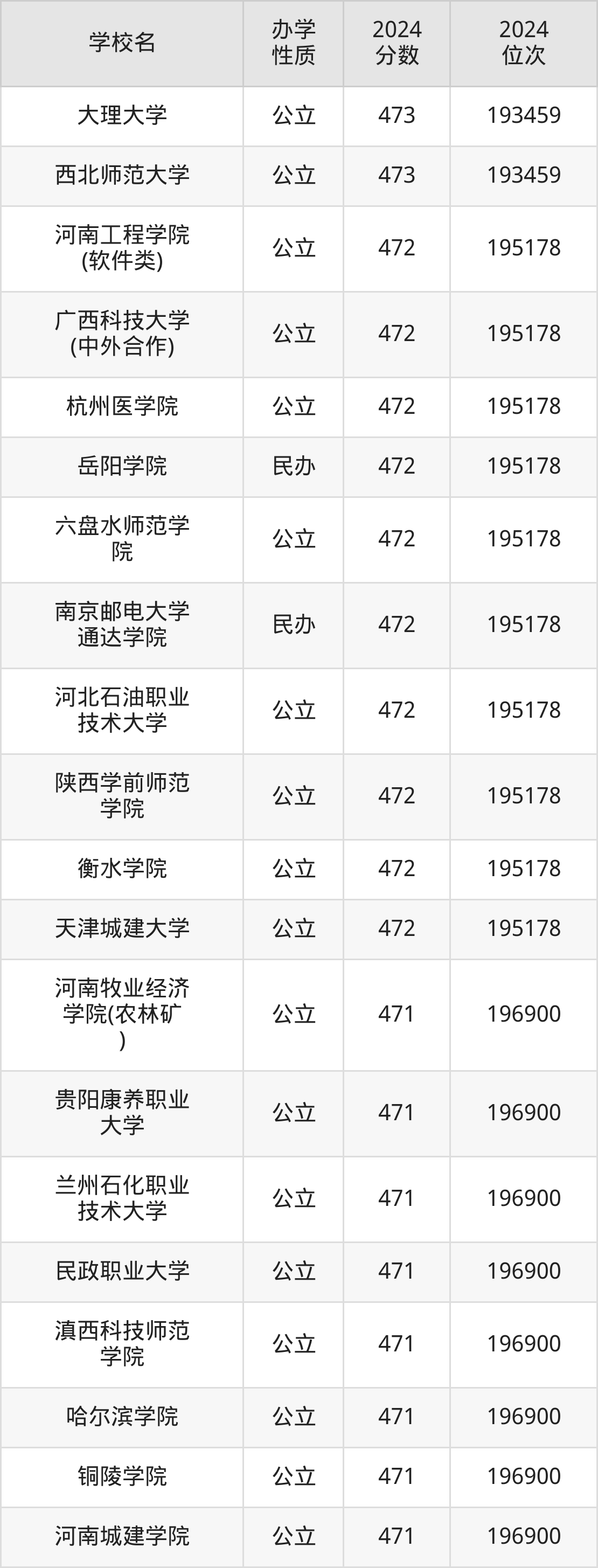 | 贵阳康养职业 大学 | 471 | 196900 |