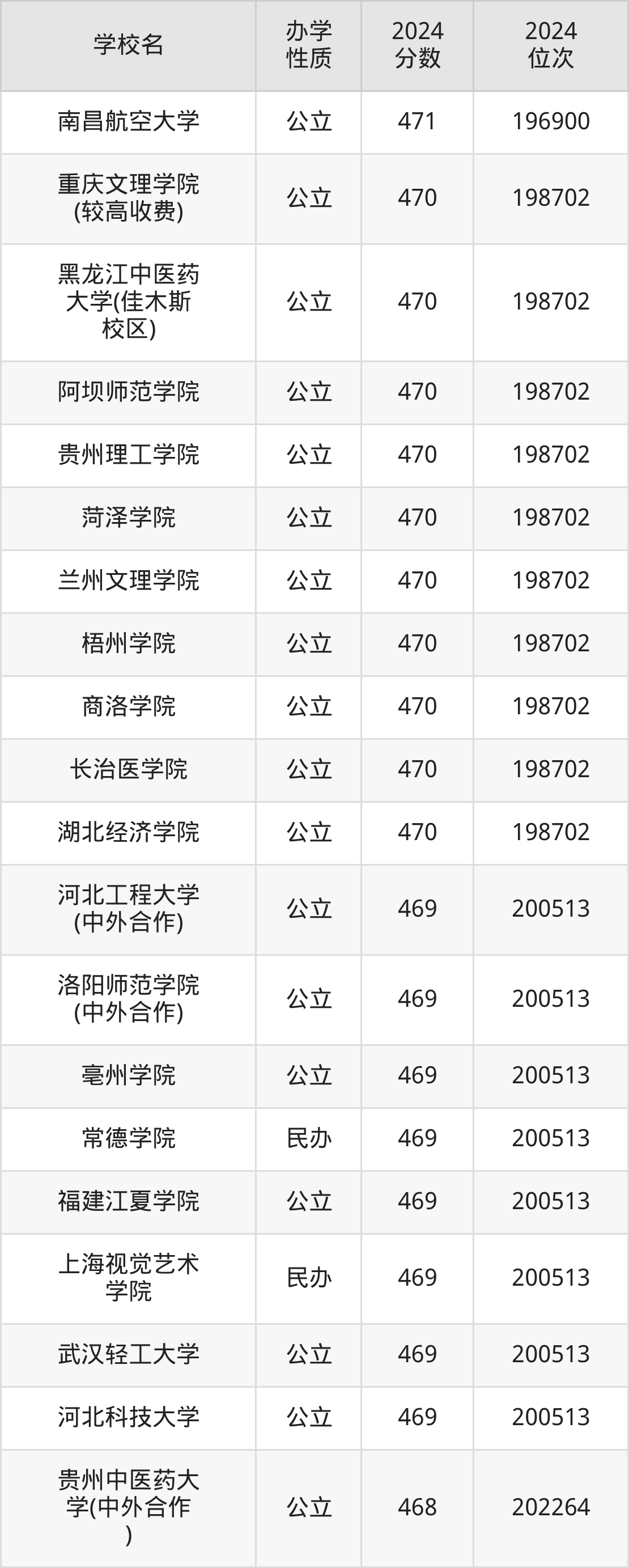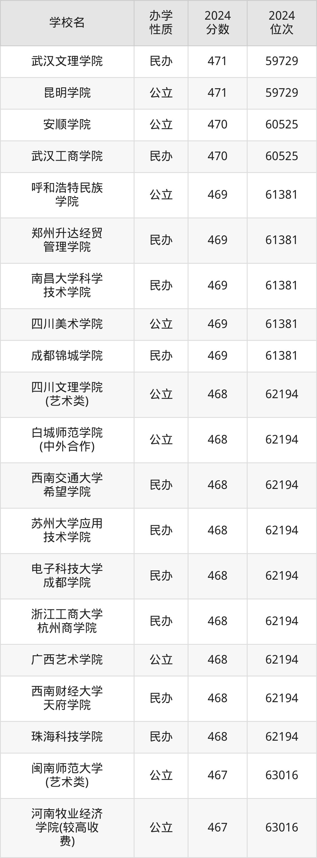 | 河南牧业经济 学院(较高收 费) | 467 | 63016 |