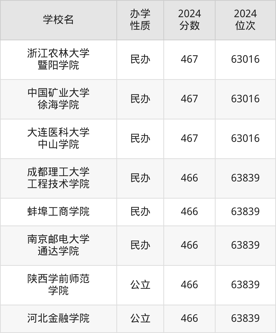 | 浙江农林大学 暨阳学院 | 467 | 63016 |