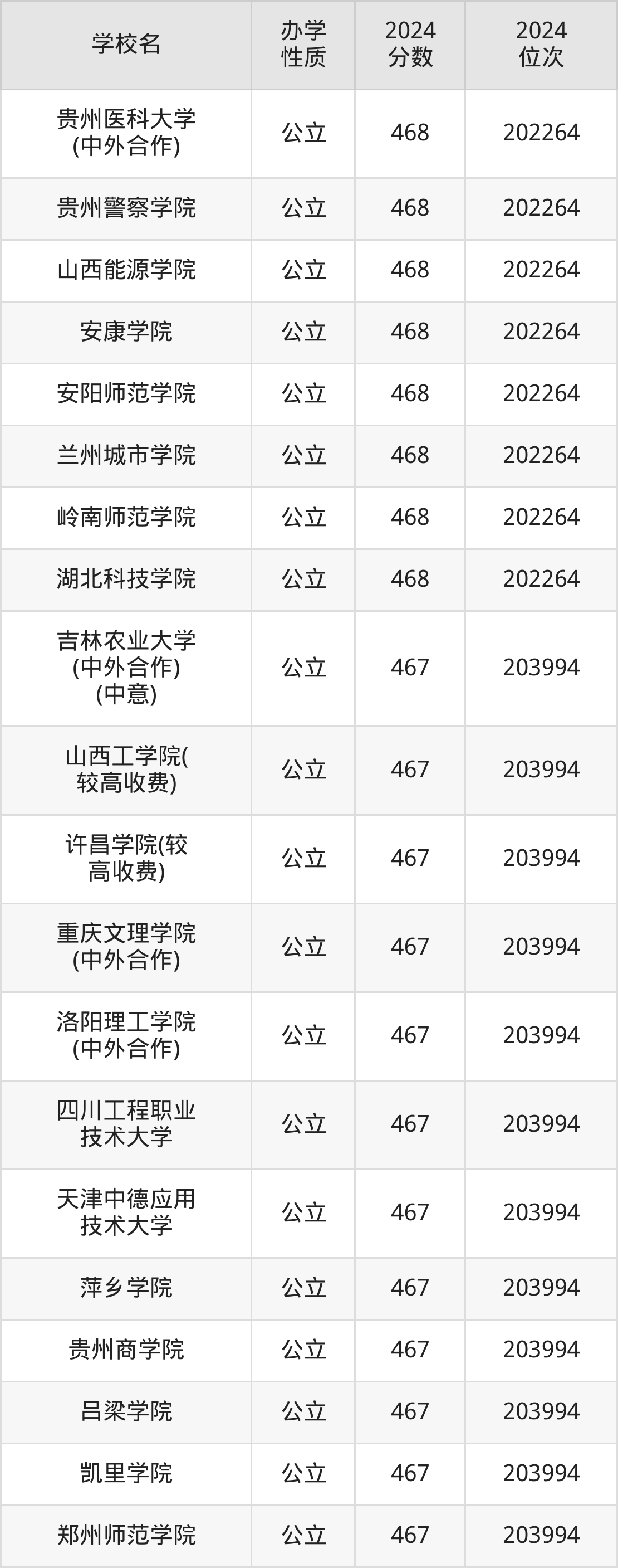 | 贵州中医药大 学(中外合作 ) | 468 | 202264 |