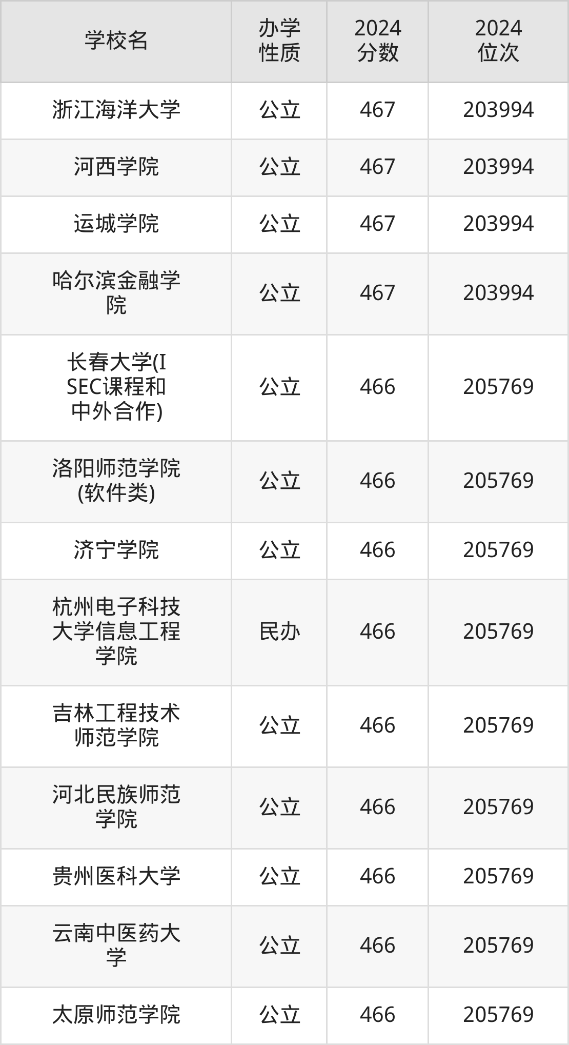 | 山西工学院( 较高收费) | 467 | 203994 |