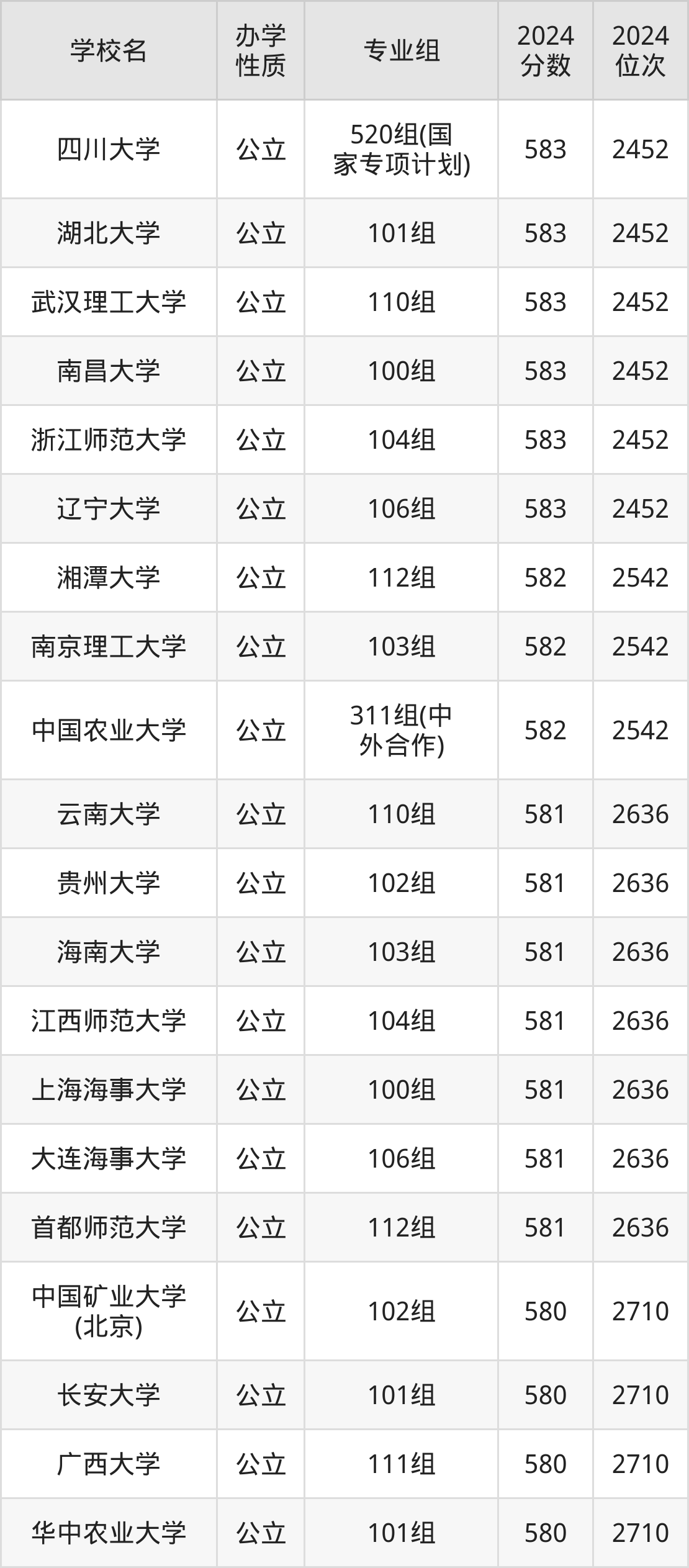 | 四川大学 | 520组(国 家专项计划) | 583 | 2452 |