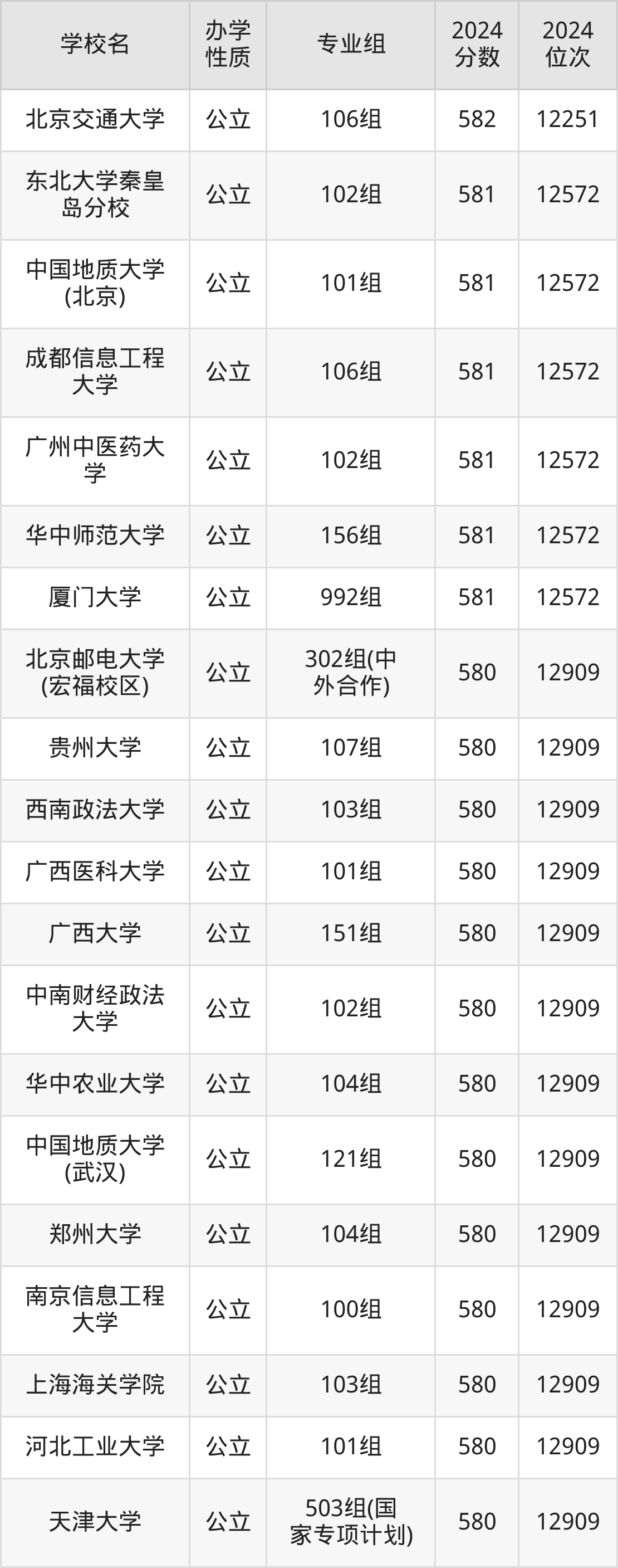 | 学校名 | 专业组 | 2024 分数 | 2024 位次 |