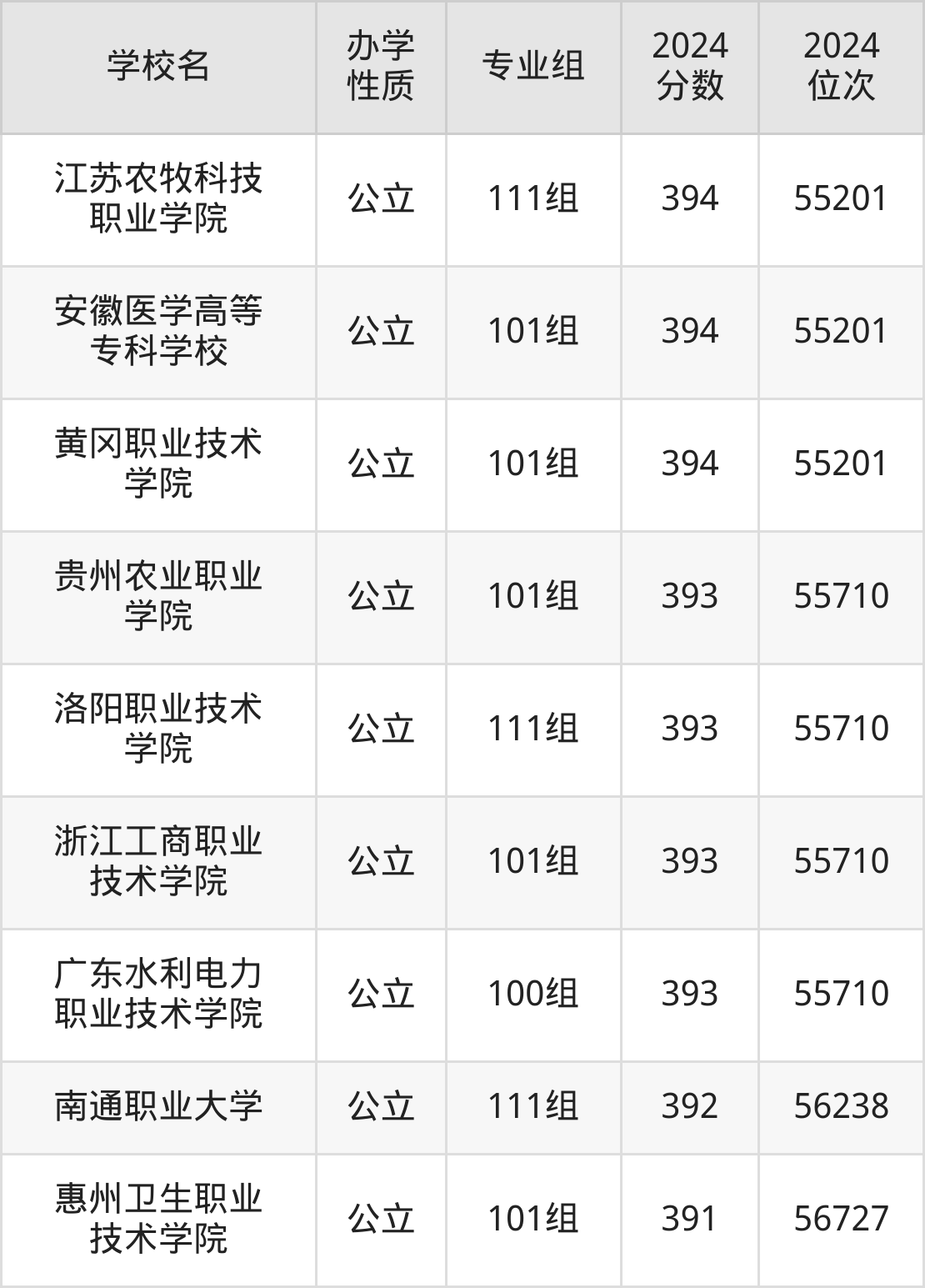 | 江苏农牧科技 职业学院 | 111组 | 394 | 55201 |