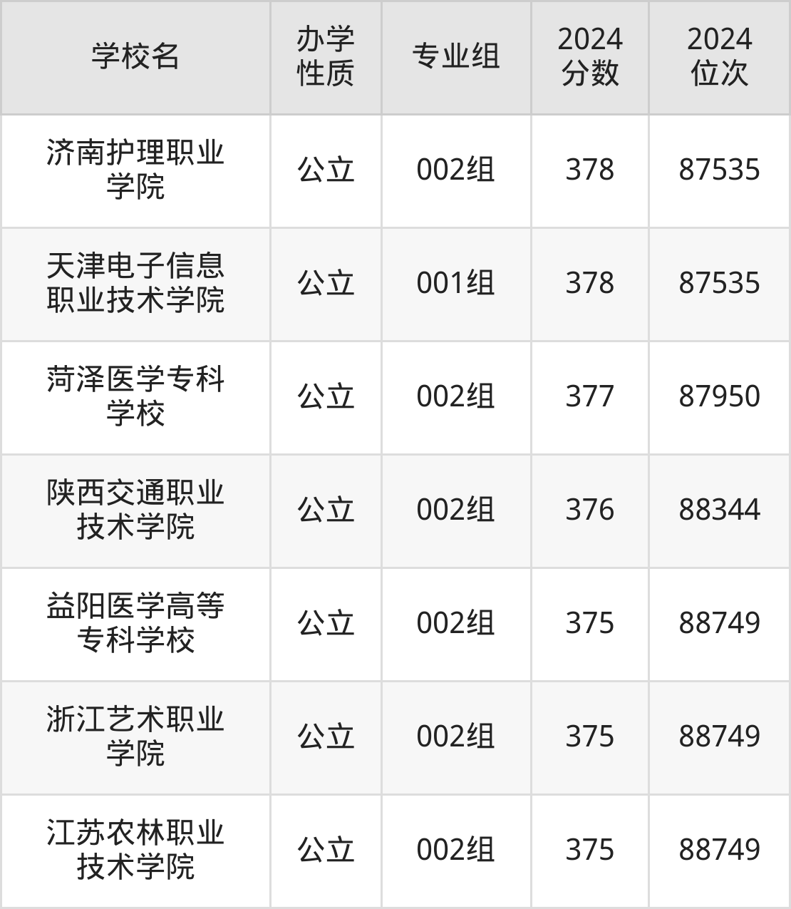 | 济南护理职业 学院 | 002组 | 378 | 87535 |