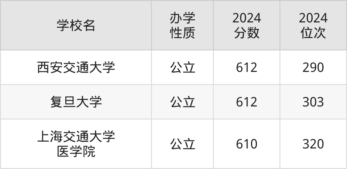 2024年宁夏理科613分考生能上复旦大学、西安交通大学、上海交通大学医学院3所985院校,具体录取分数线及位次为: