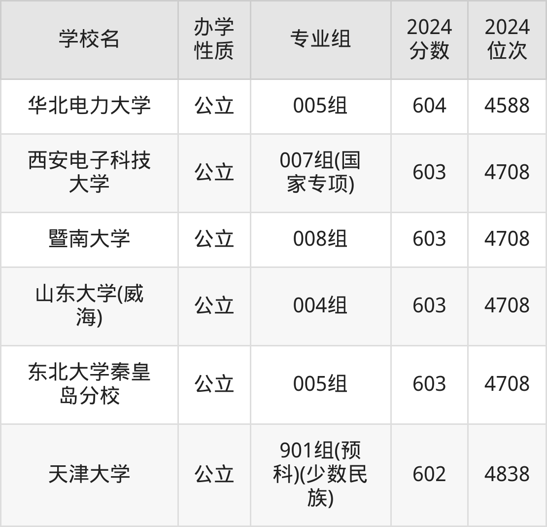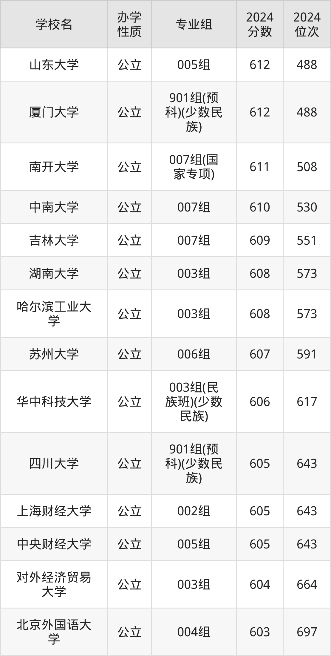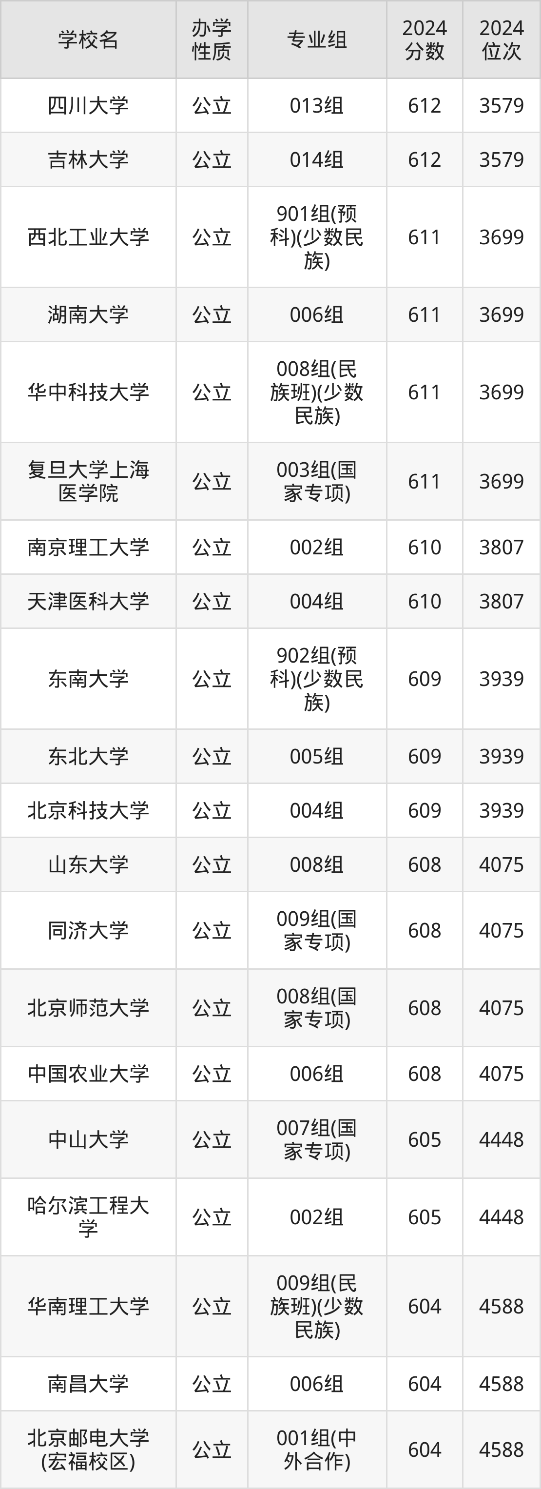| 学校名 | 专业组 | 2024 分数 | 2024 位次 |