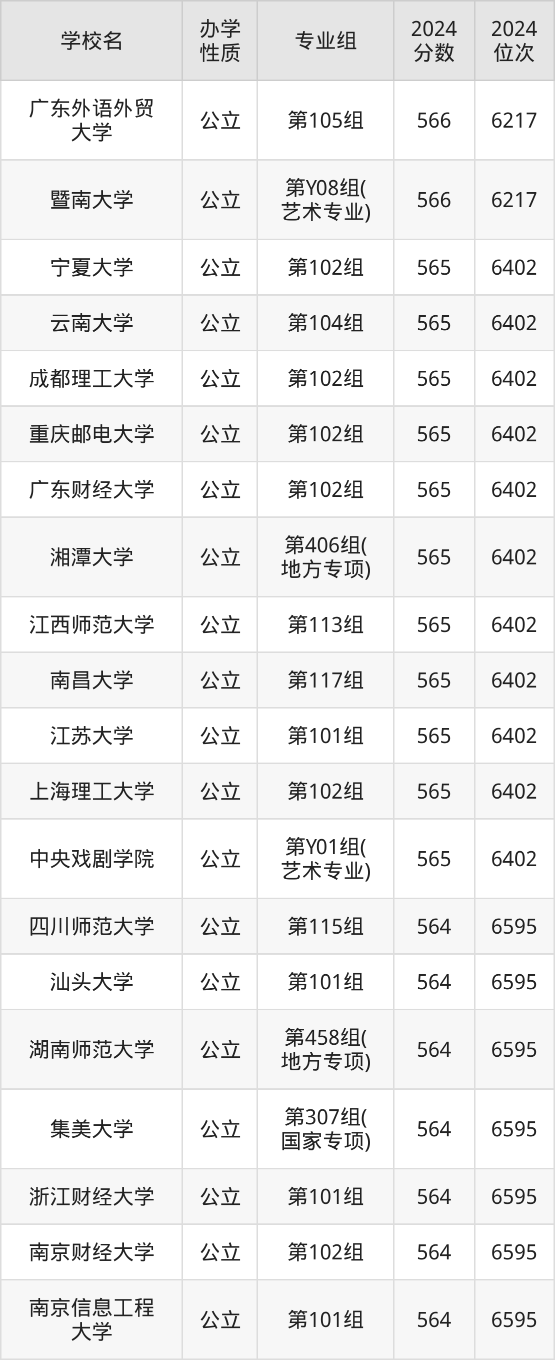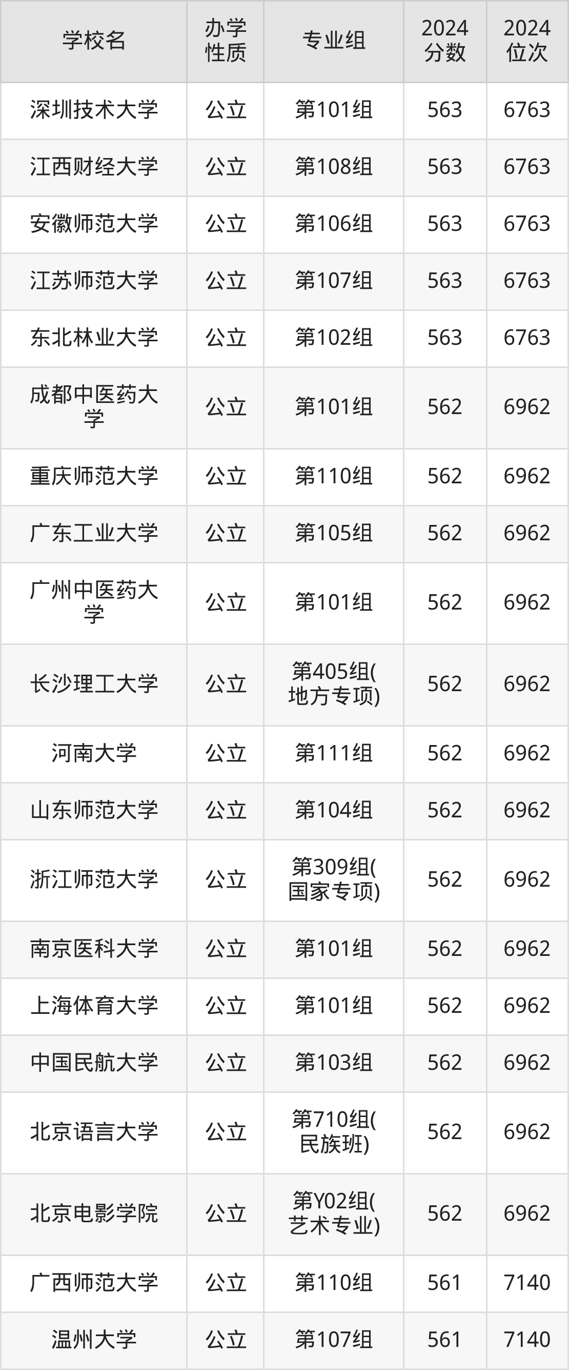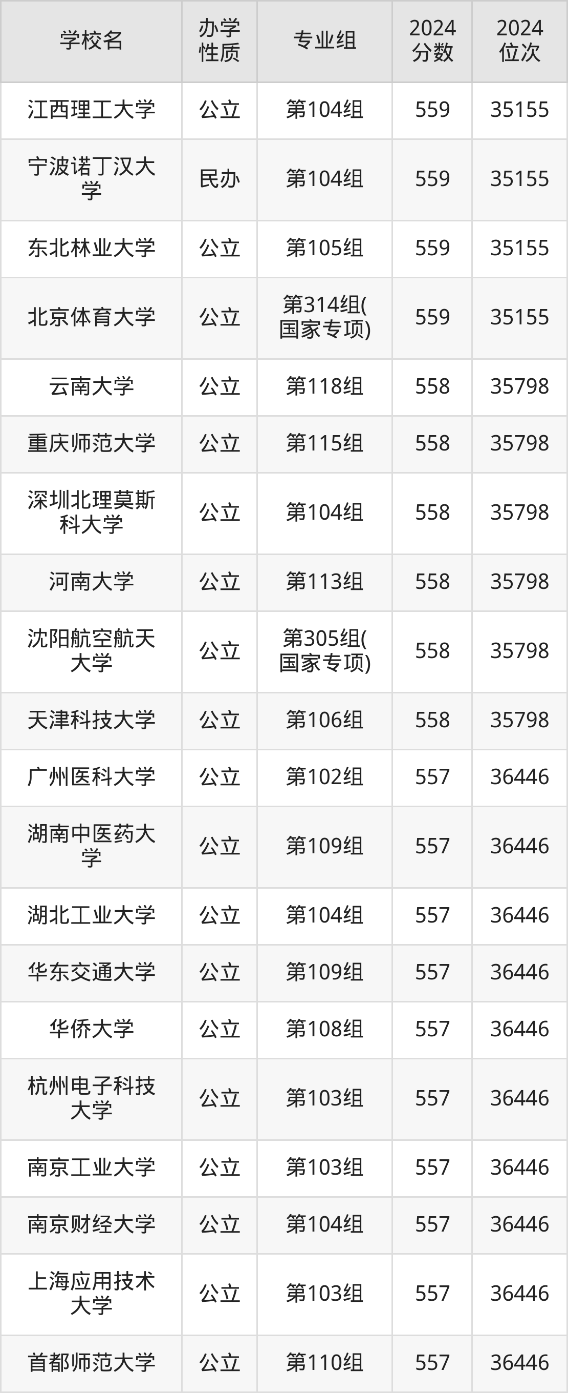 | 学校名 | 专业组 | 2024 分数 | 2024 位次 |