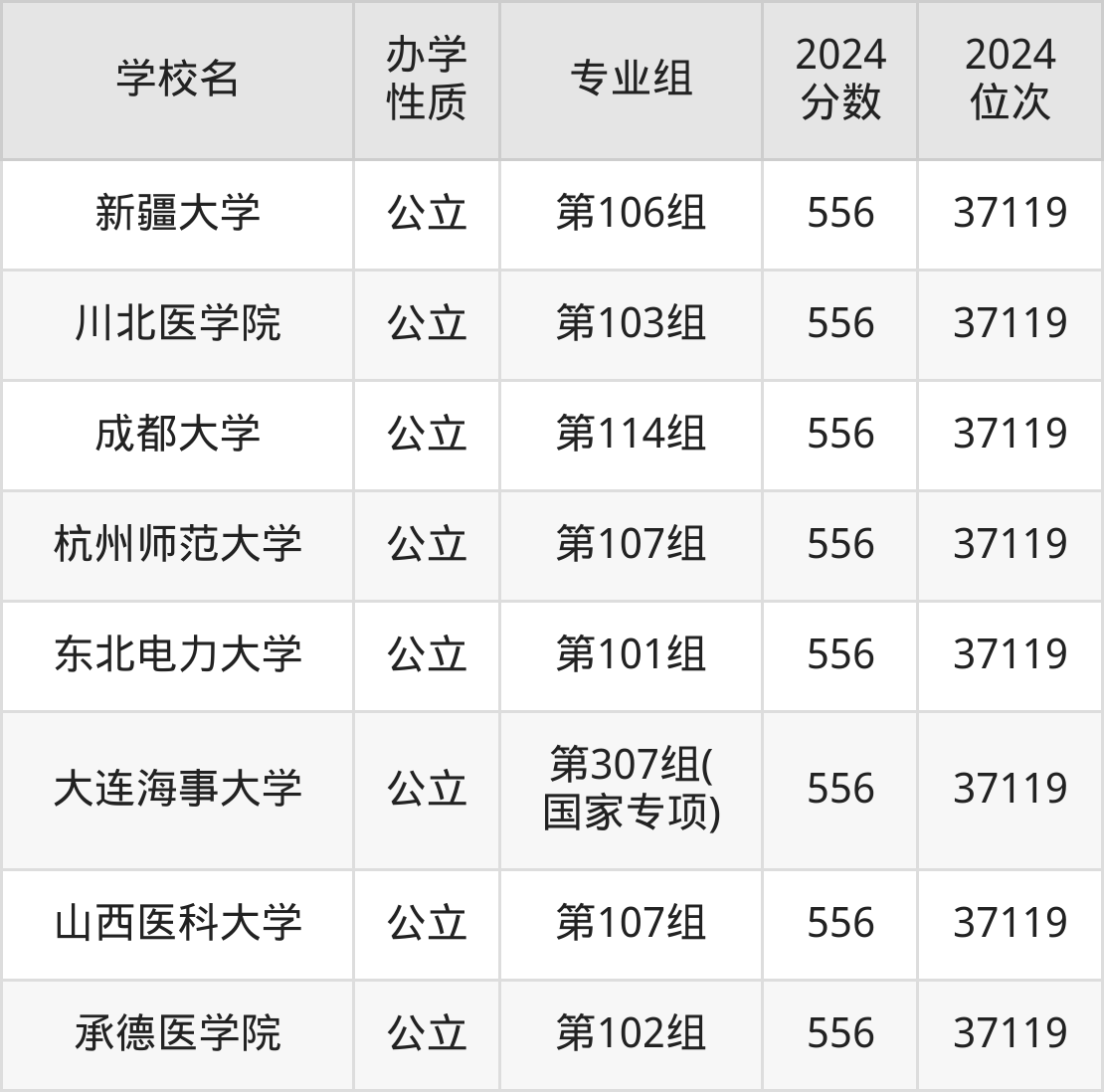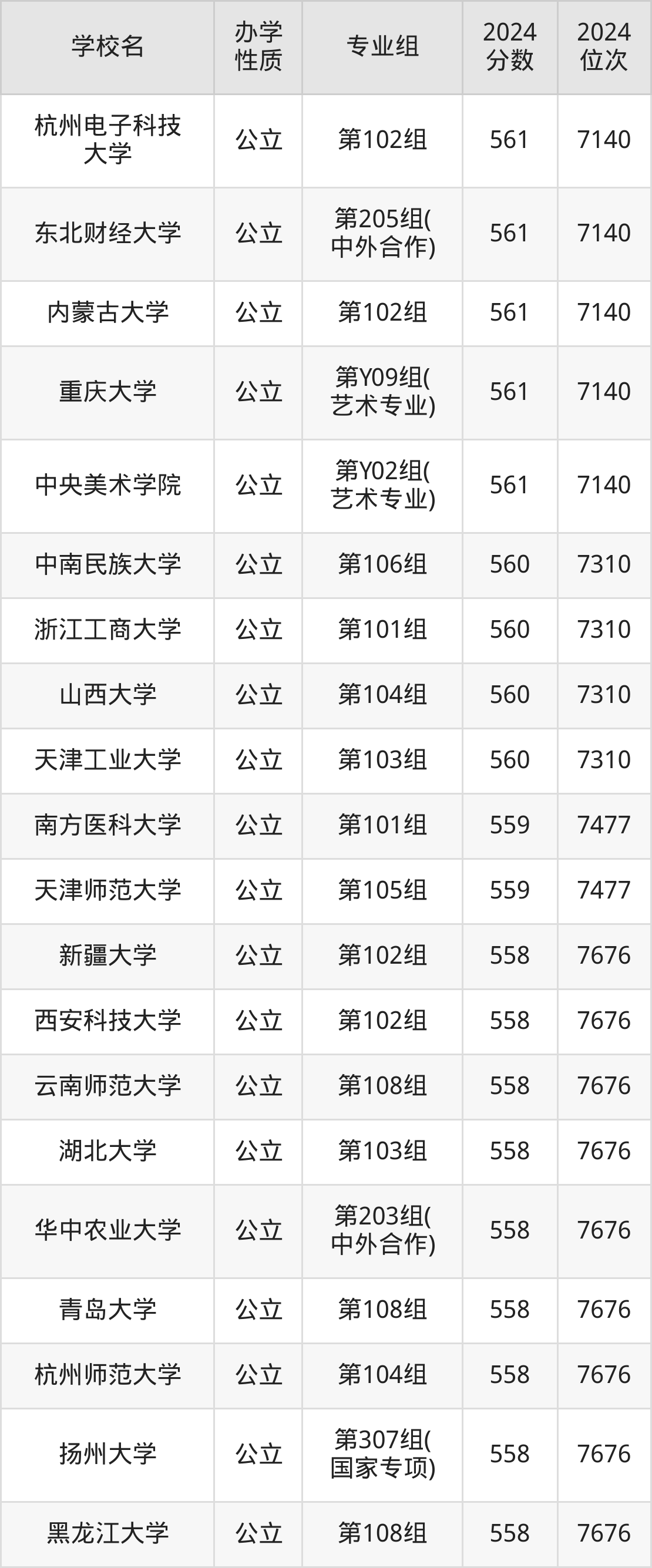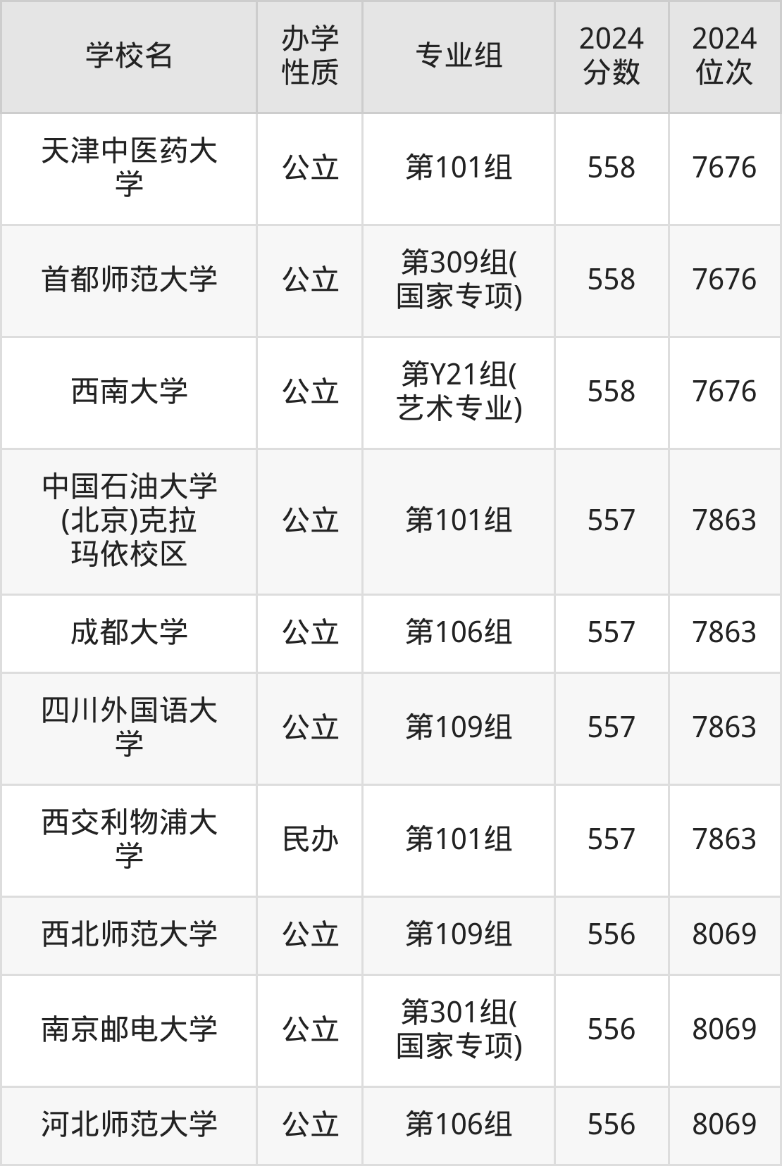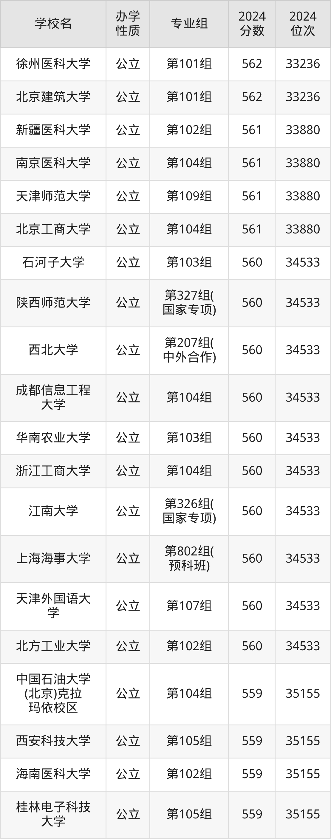 | 学校名 | 专业组 | 2024 分数 | 2024 位次 |