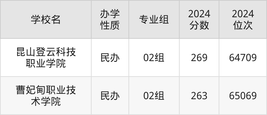 2024年江苏物理类266分考生能上昆山登云科技职业学院、曹妃甸职业技术学院2所专科院校,具体录取分数线及位次为: