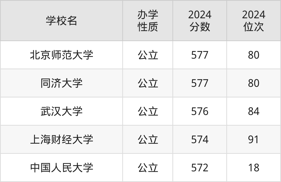 2024年青海文科575分考生能上中国人民大学、上海财经大学、武汉大学、同济大学、北京师范大学5所211院校,具体录取分数线及位次为: