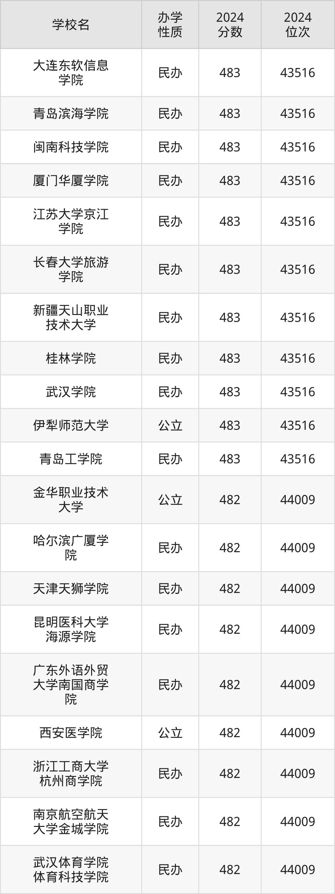 | 陕西国际商贸 学院 | 481 | 44527 |